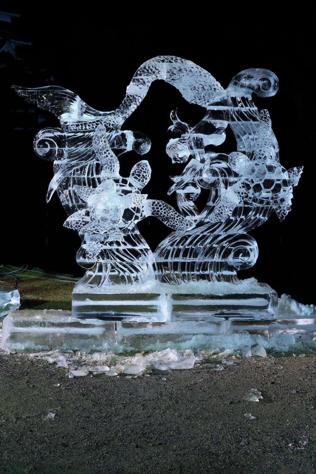- 加瀬秀雄 赤羽目健悟 氷彫刻『さあ出発!!海の中の新しい仲間と共に』【4】 (2018年)