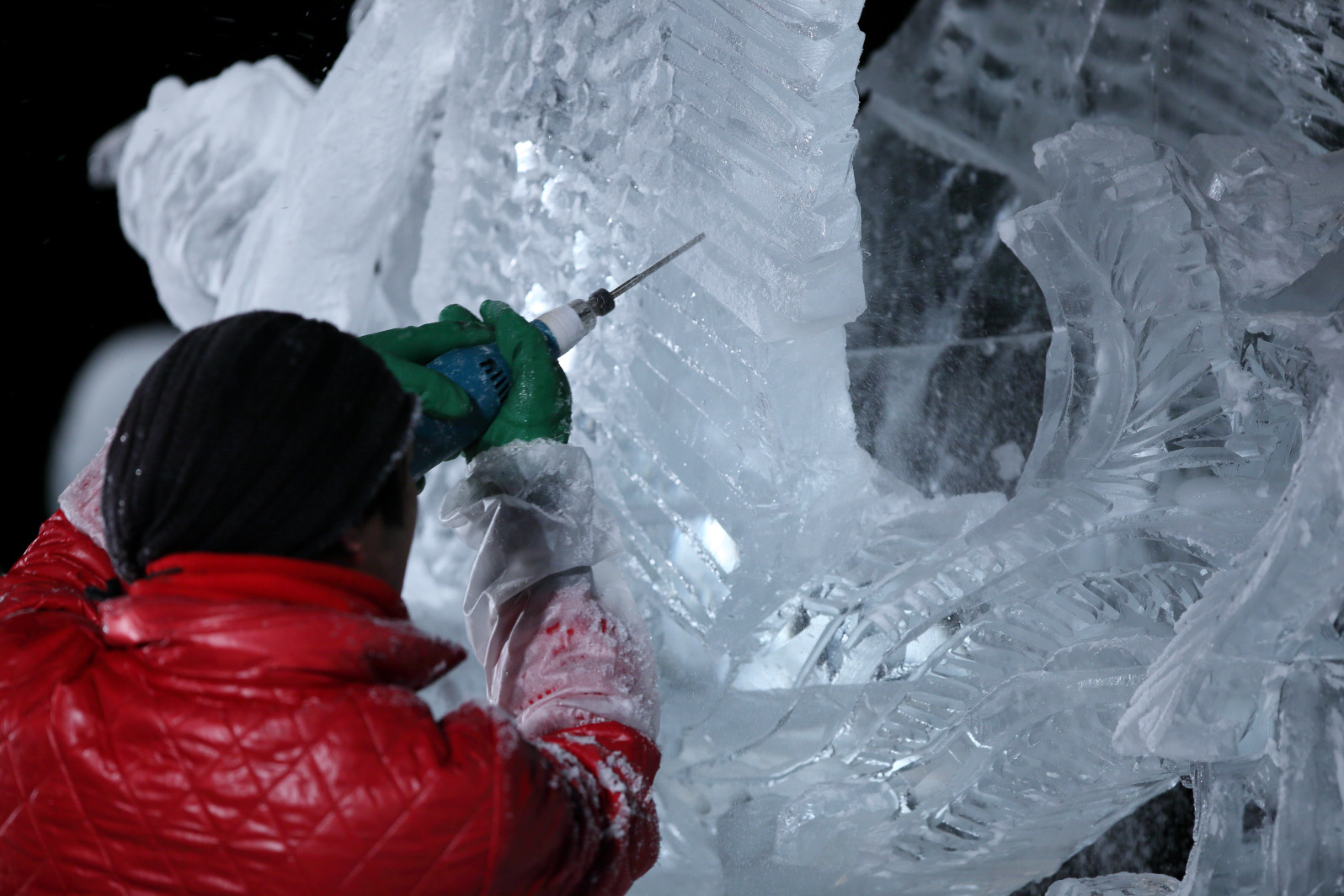 「夜通しで氷彫刻を作る」のだというが、それが一体どういうことなのかはさっぱりわからない。