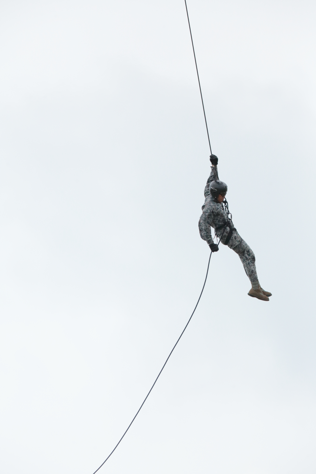 降下用ロープを伝って降りてくるのは