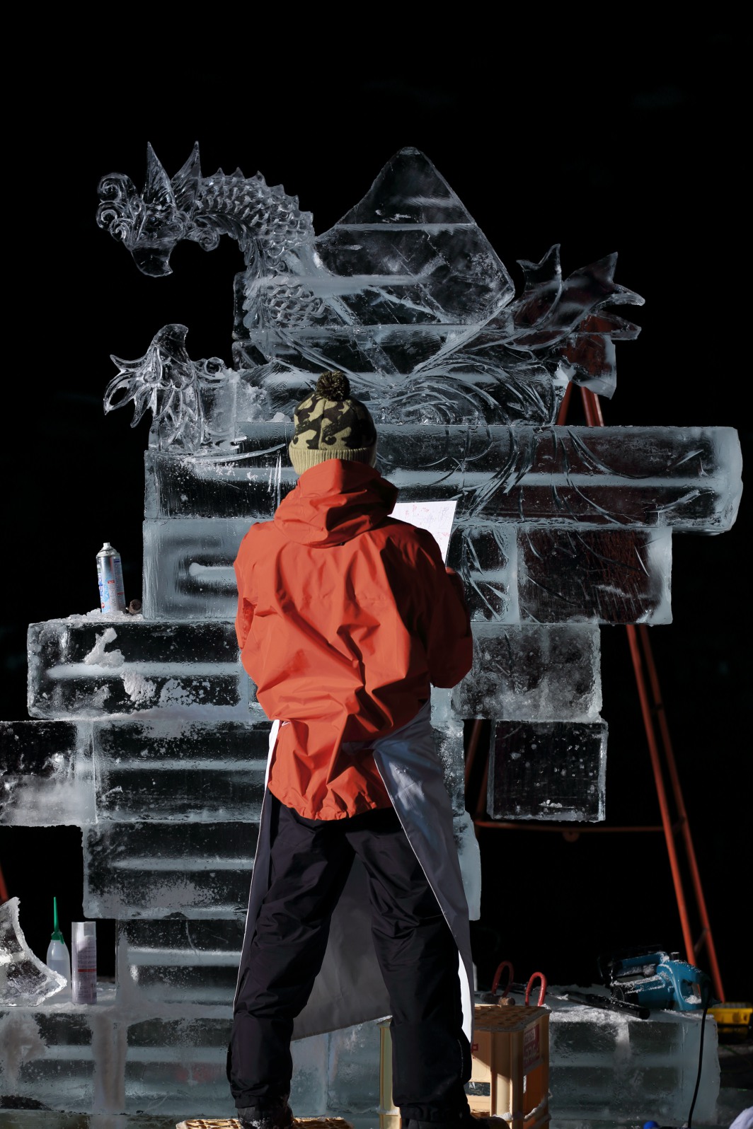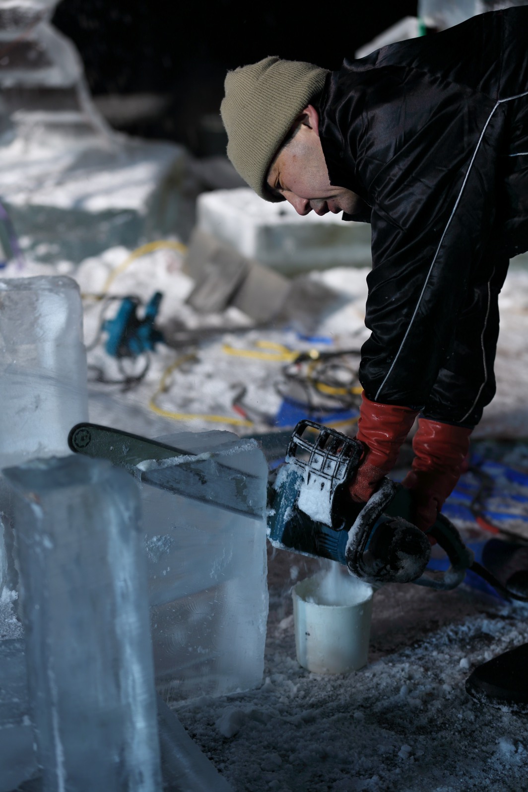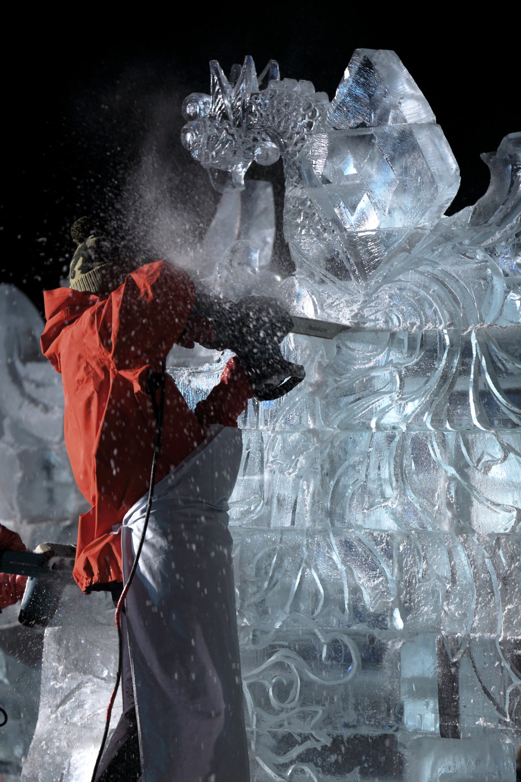 氷彫刻の作り方は製作者によって異なる。