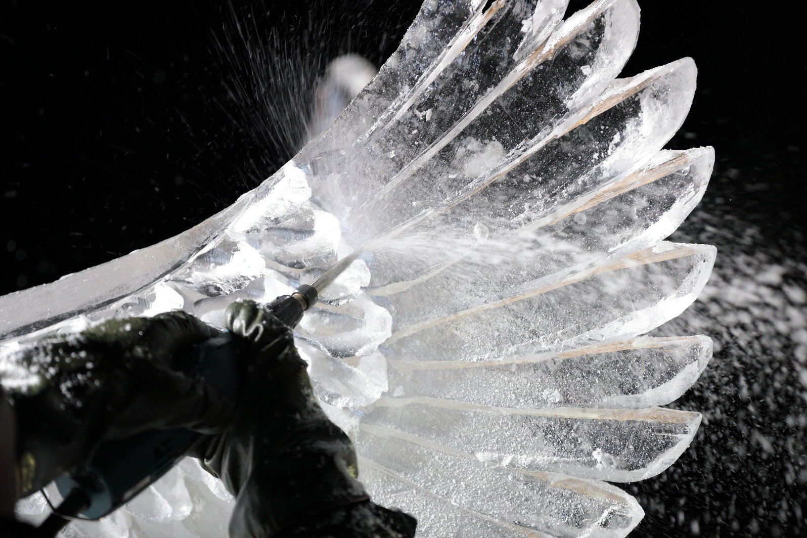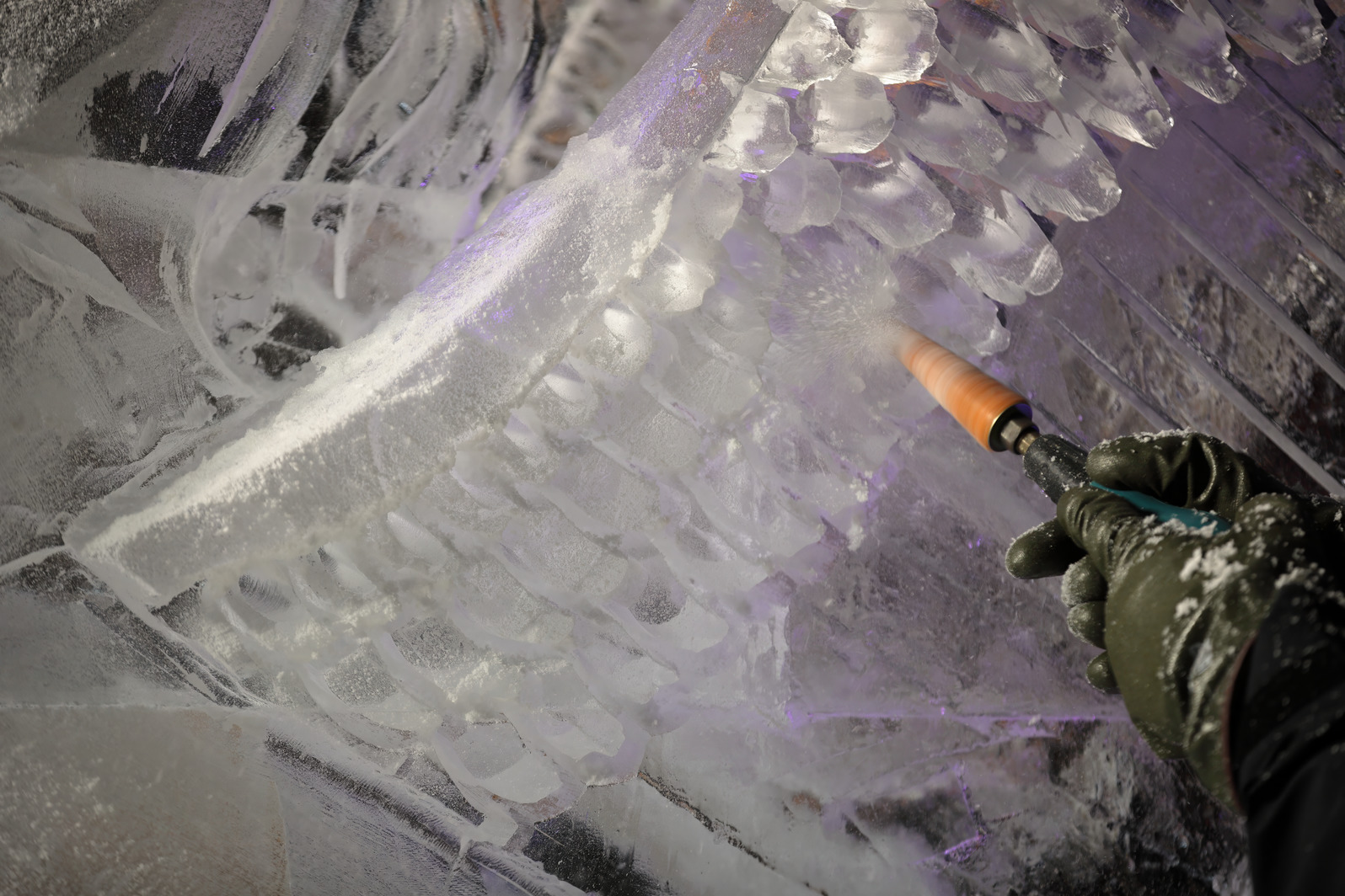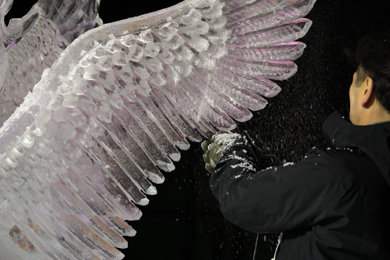これが氷彫刻の面白さの一つでもある。