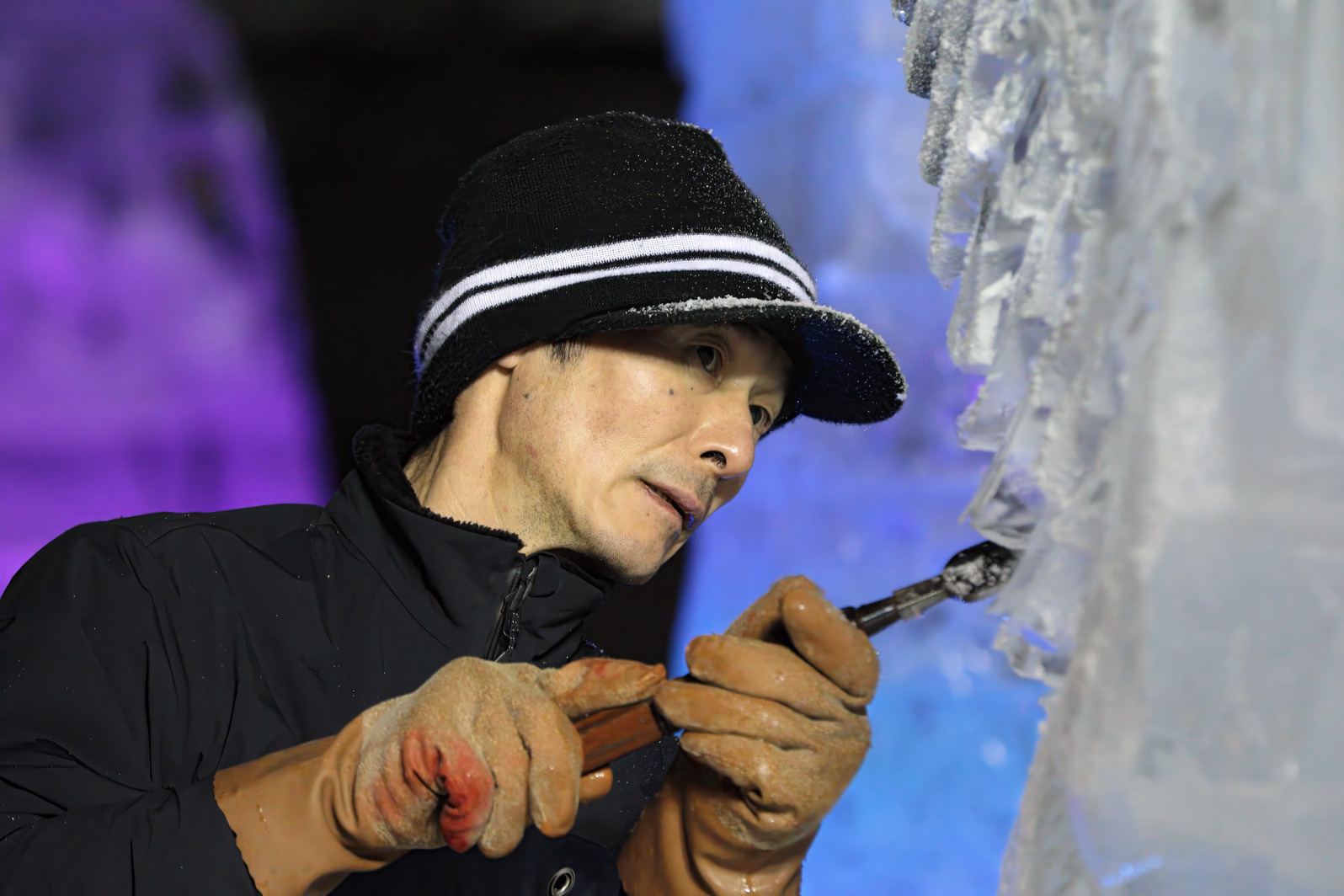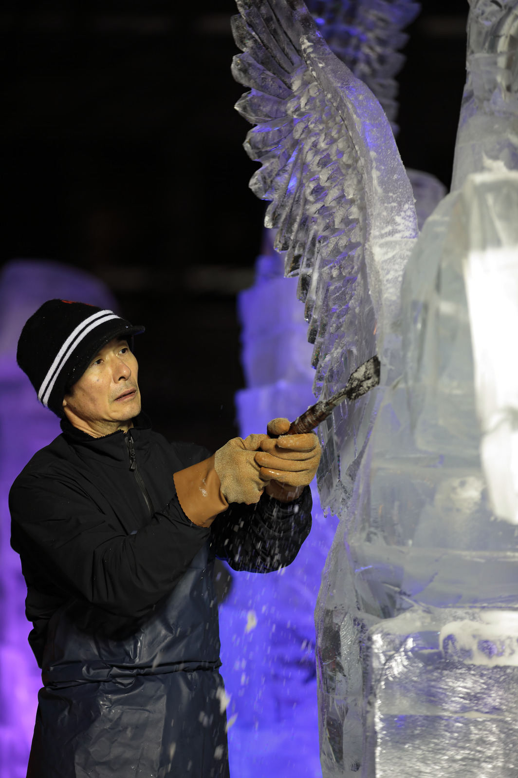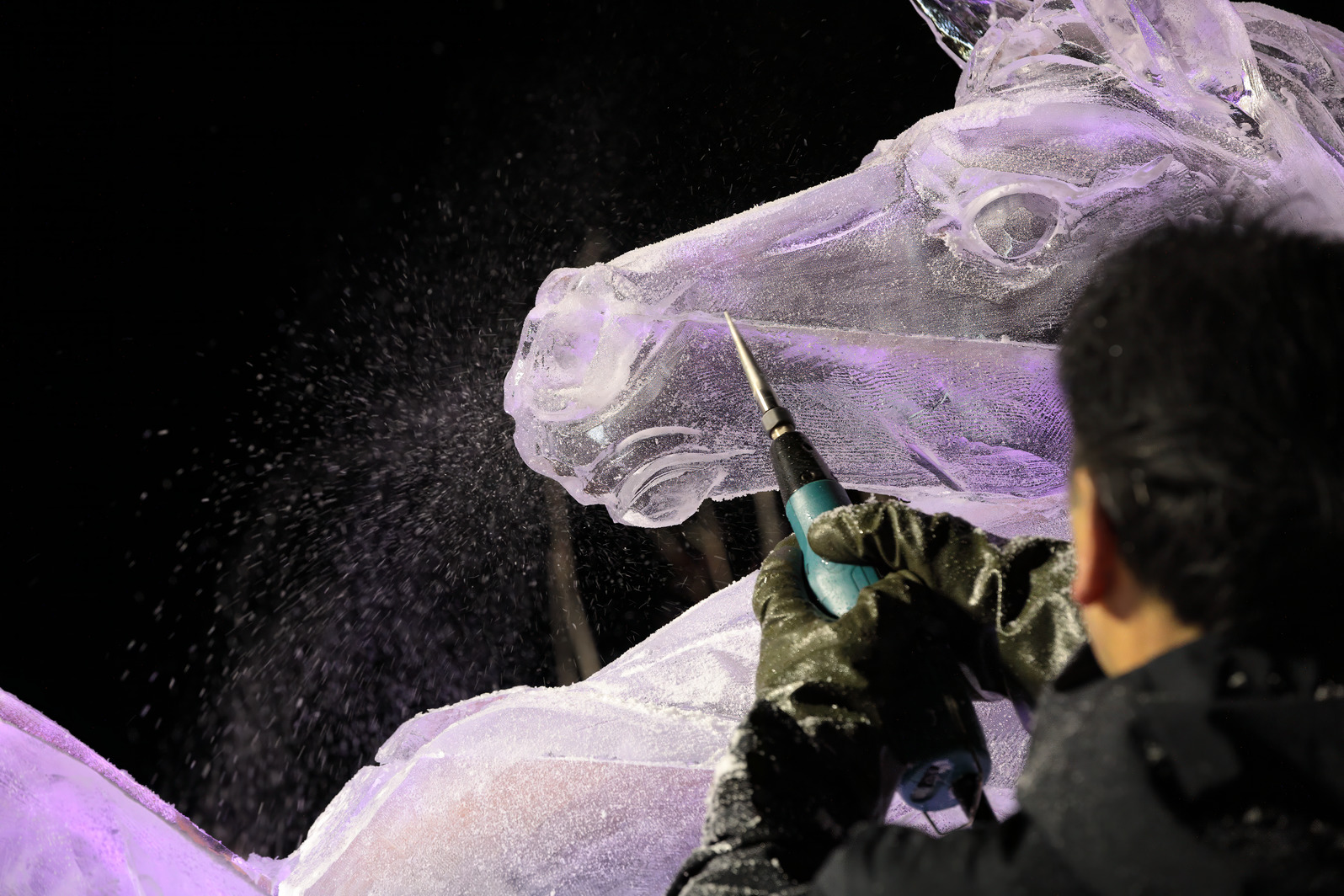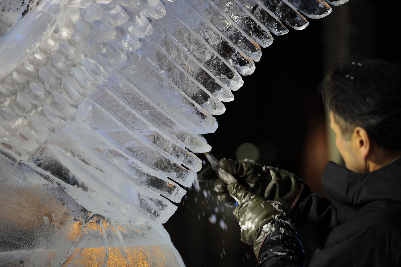 これが氷彫刻の面白さの一つでもある。