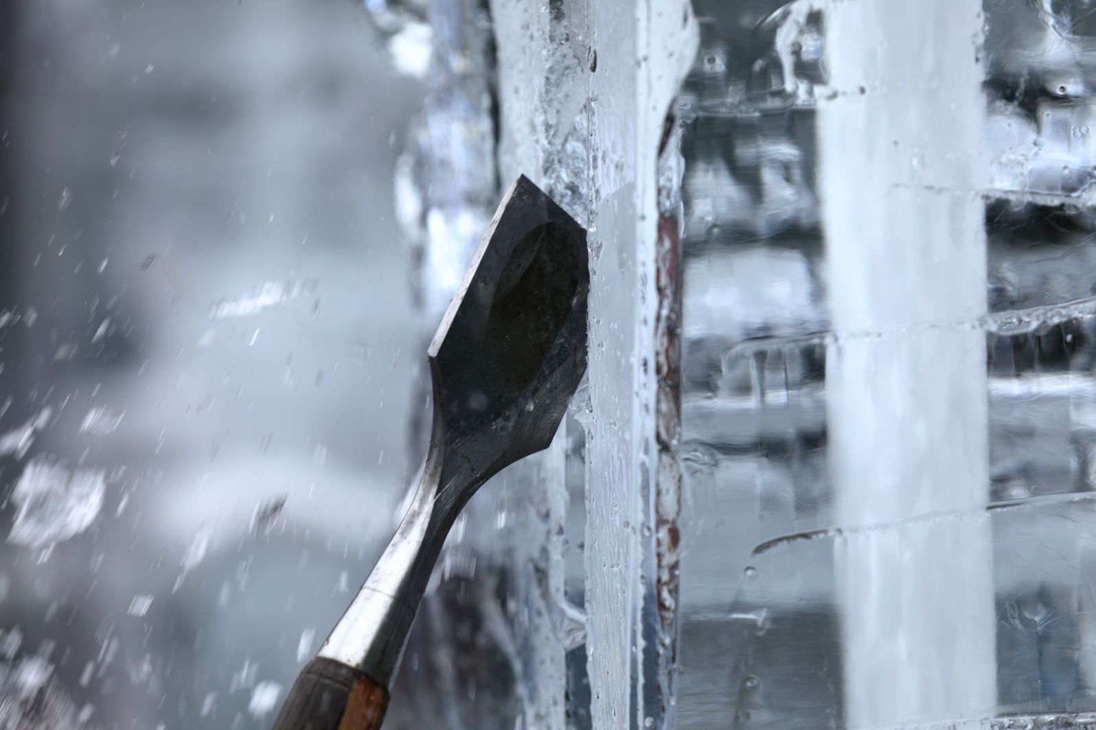 氷彫刻の定番テクニックが、今回は全て使えない。