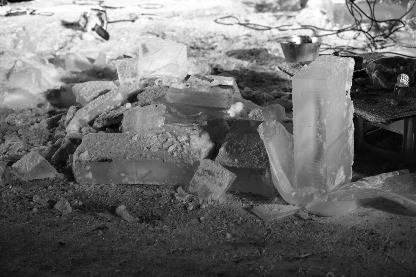 作業で出た氷屑。