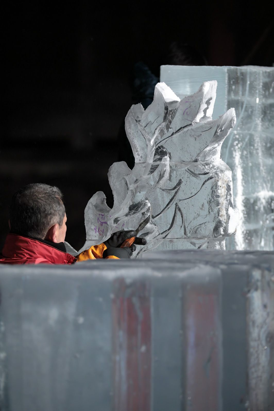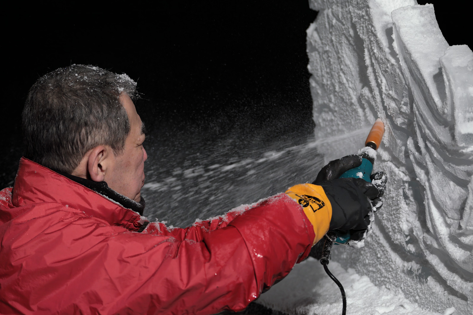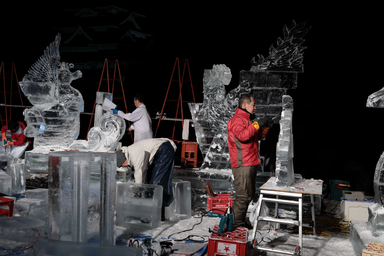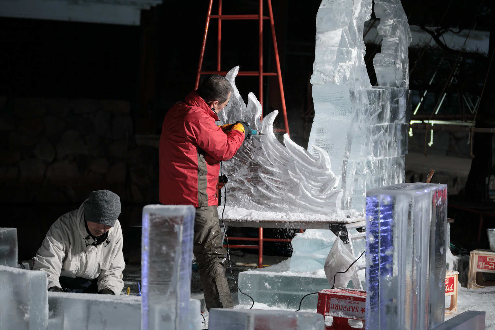 積み上げた氷の彫刻を進める。