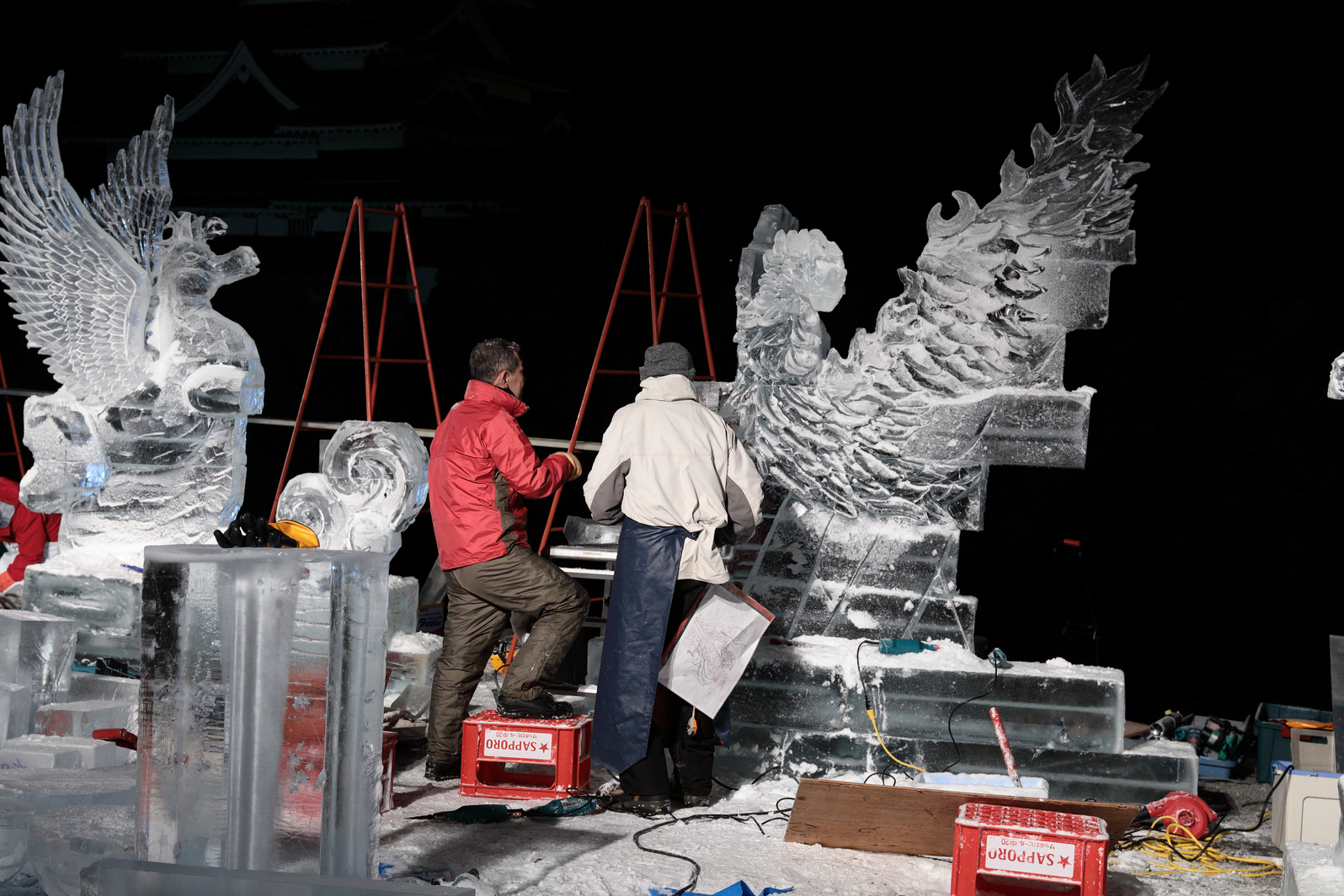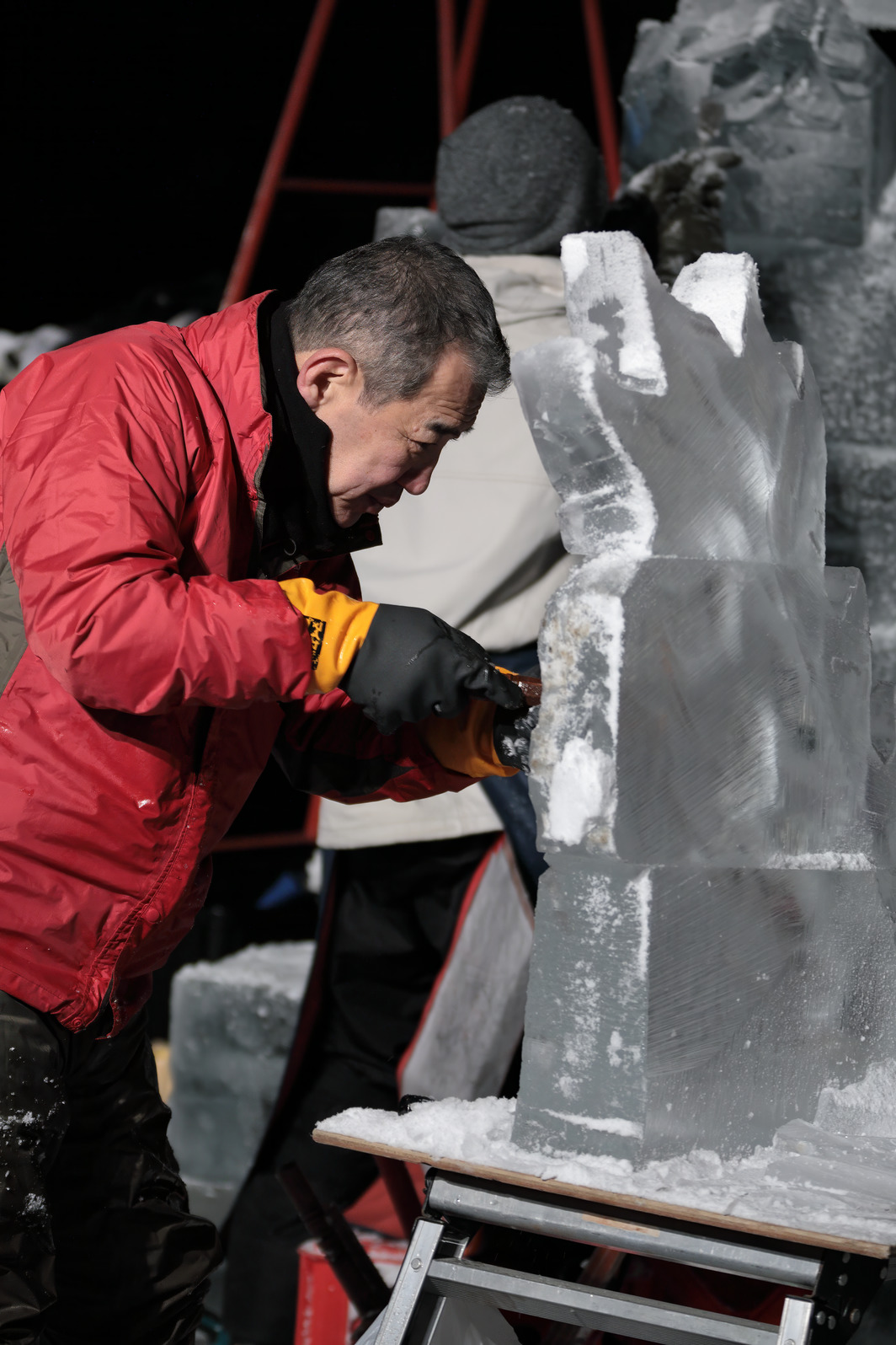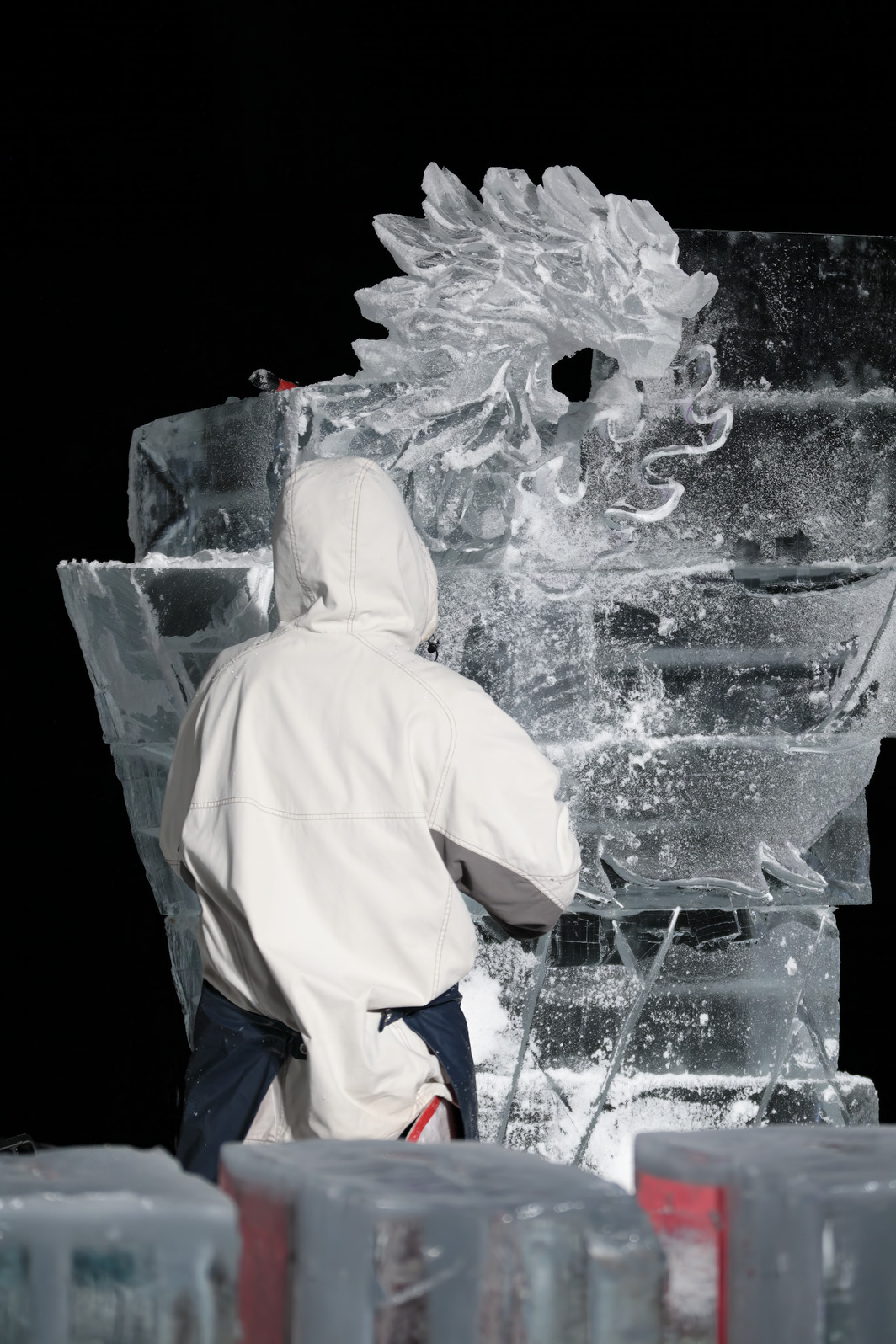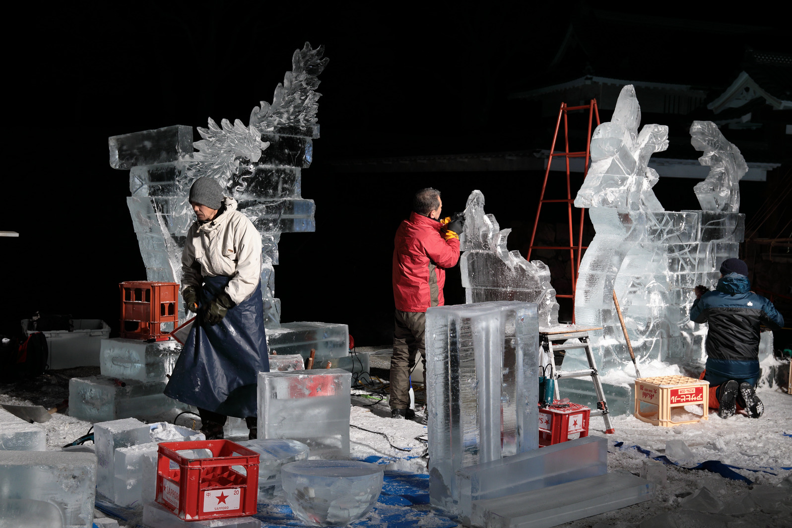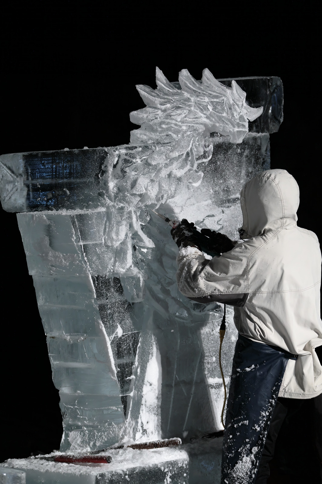積み上げた氷の彫刻を進める。