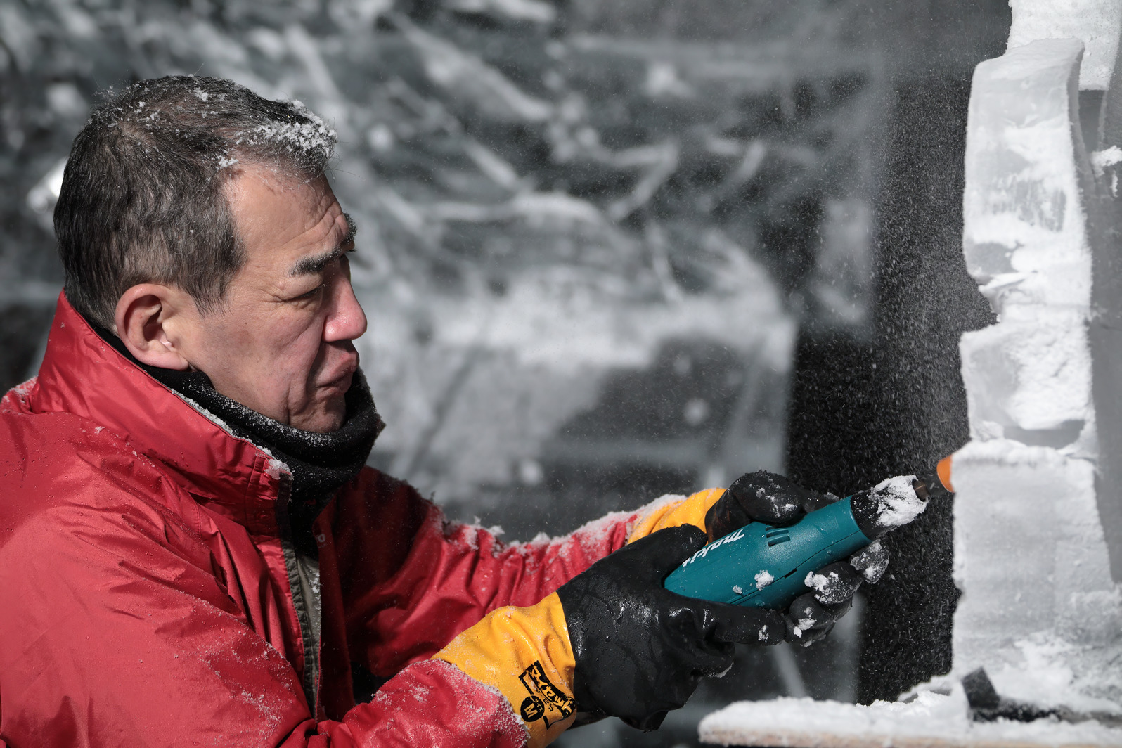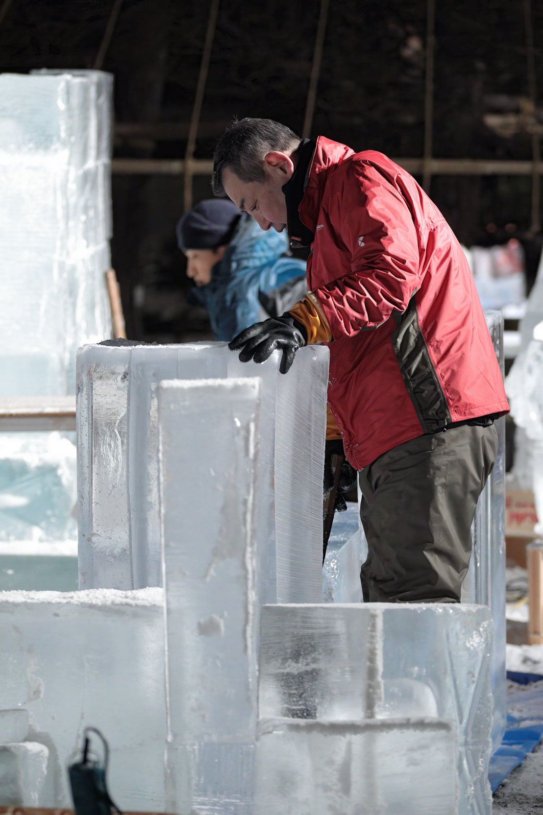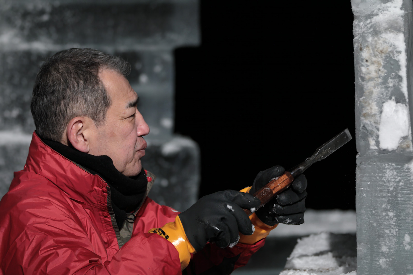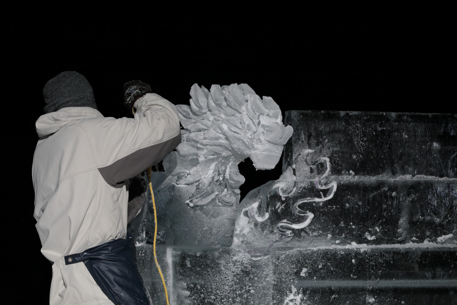 積み上げた氷の彫刻を進める。