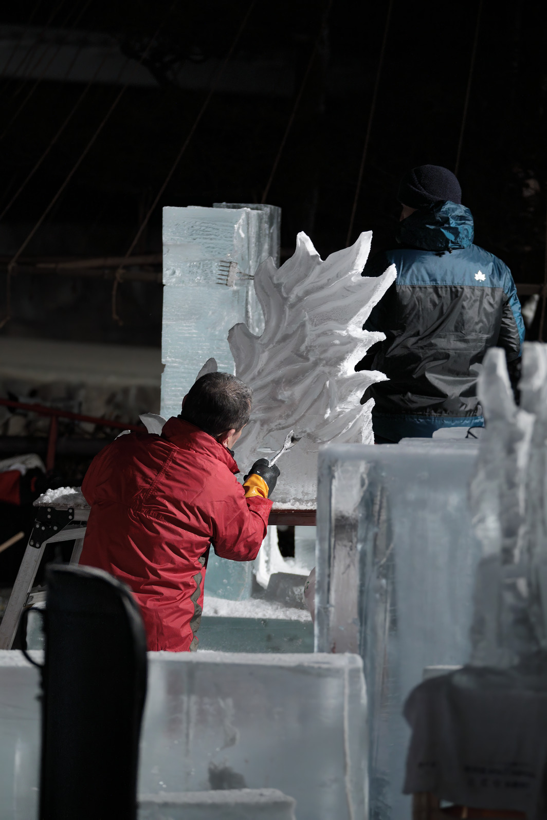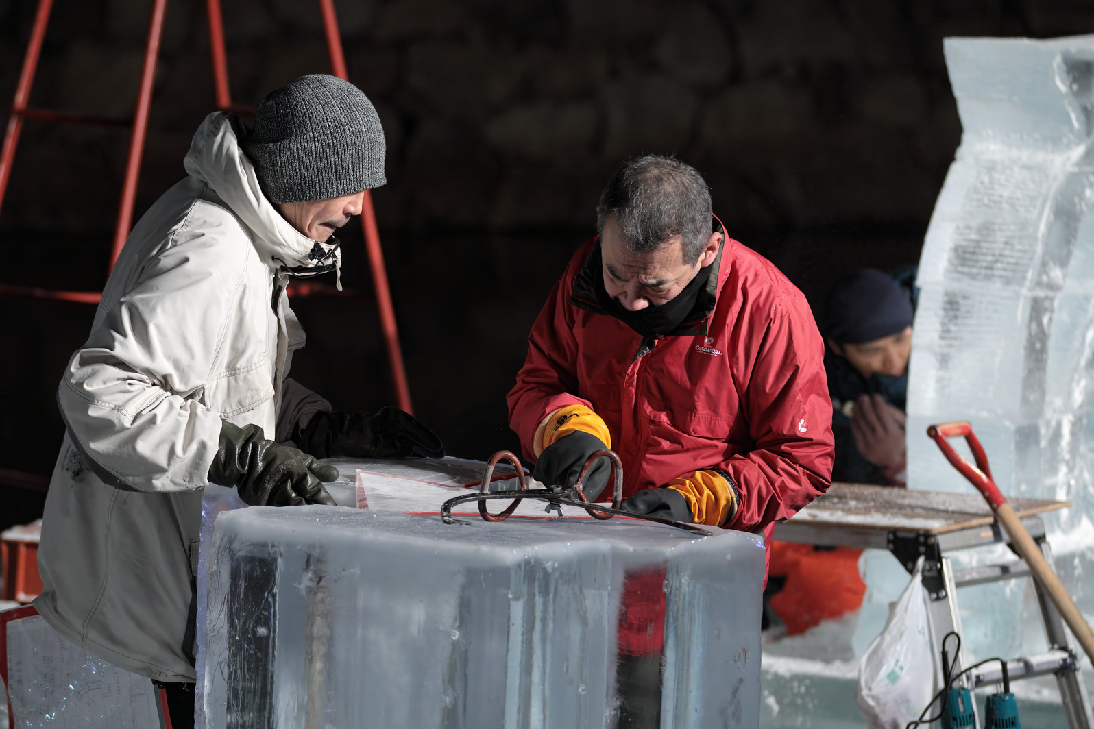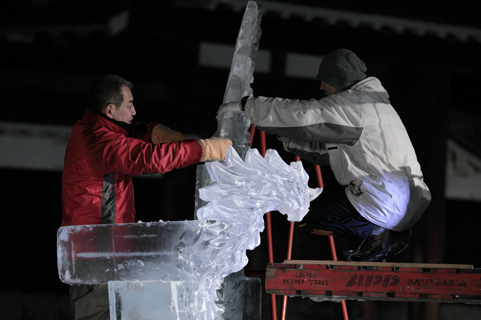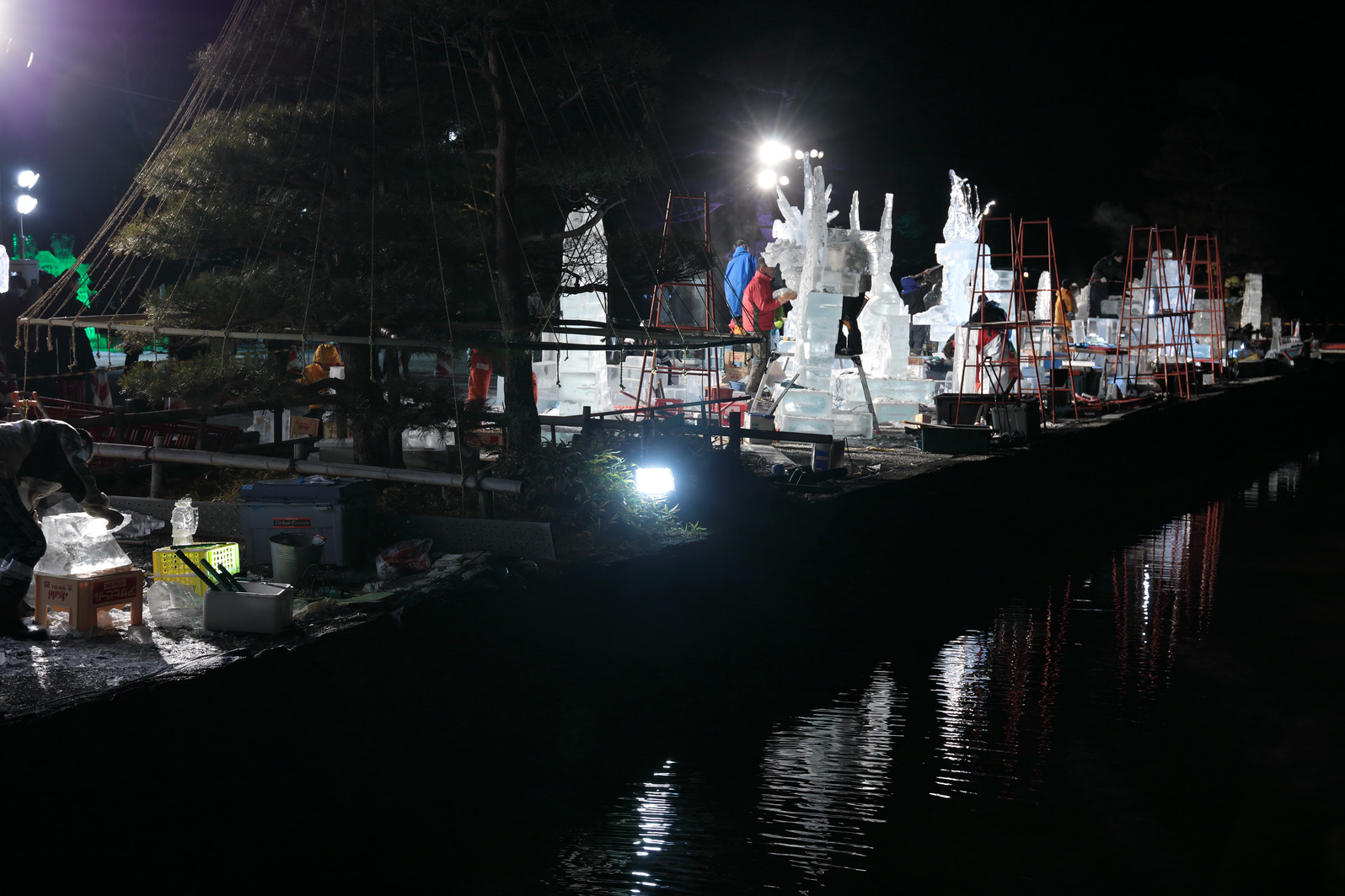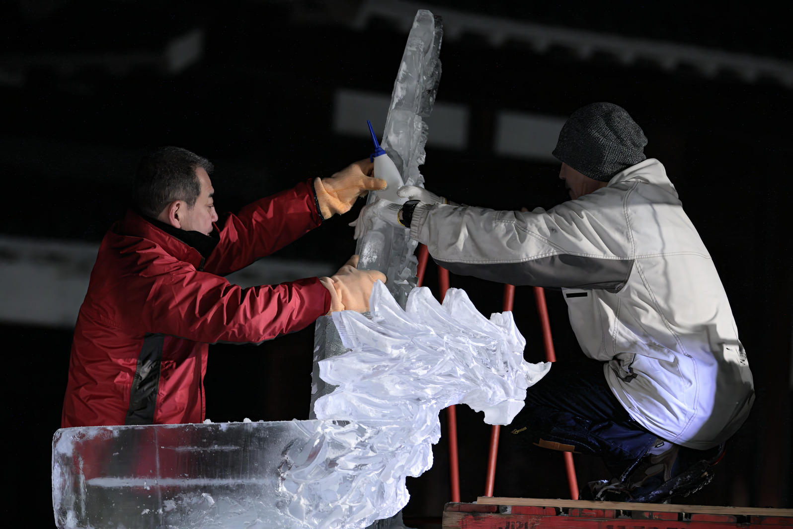 積み上げた氷の彫刻を進める。
