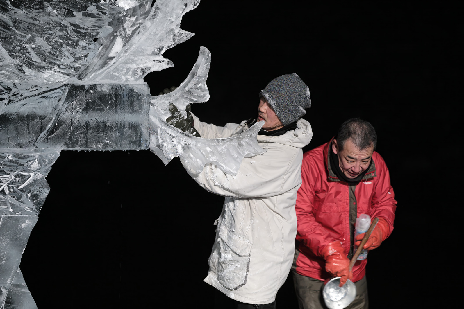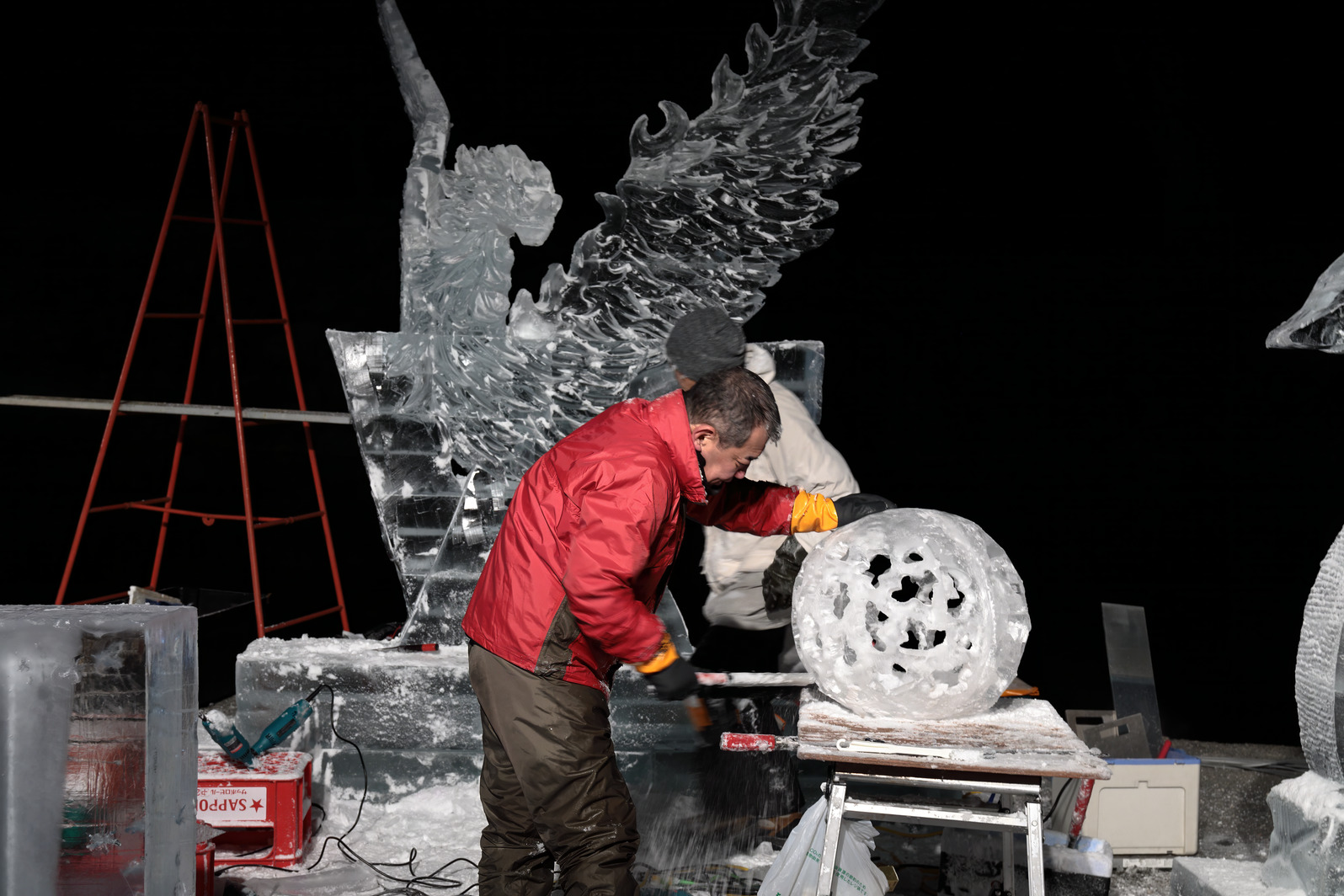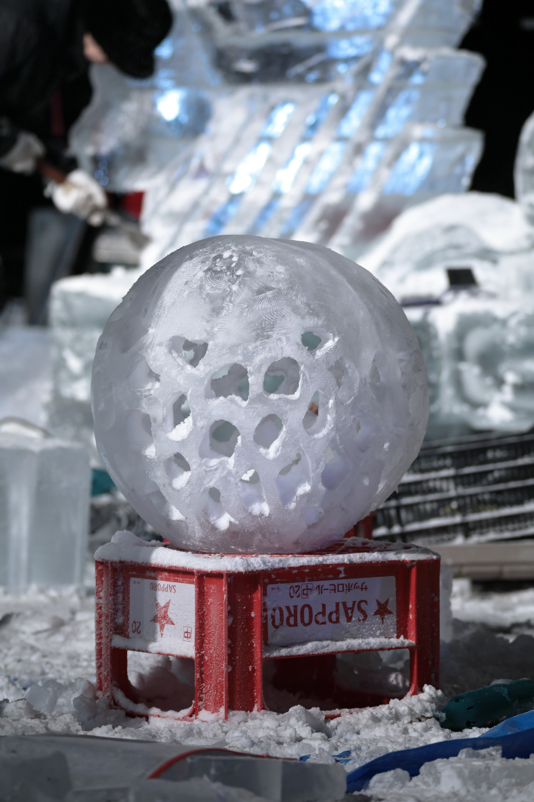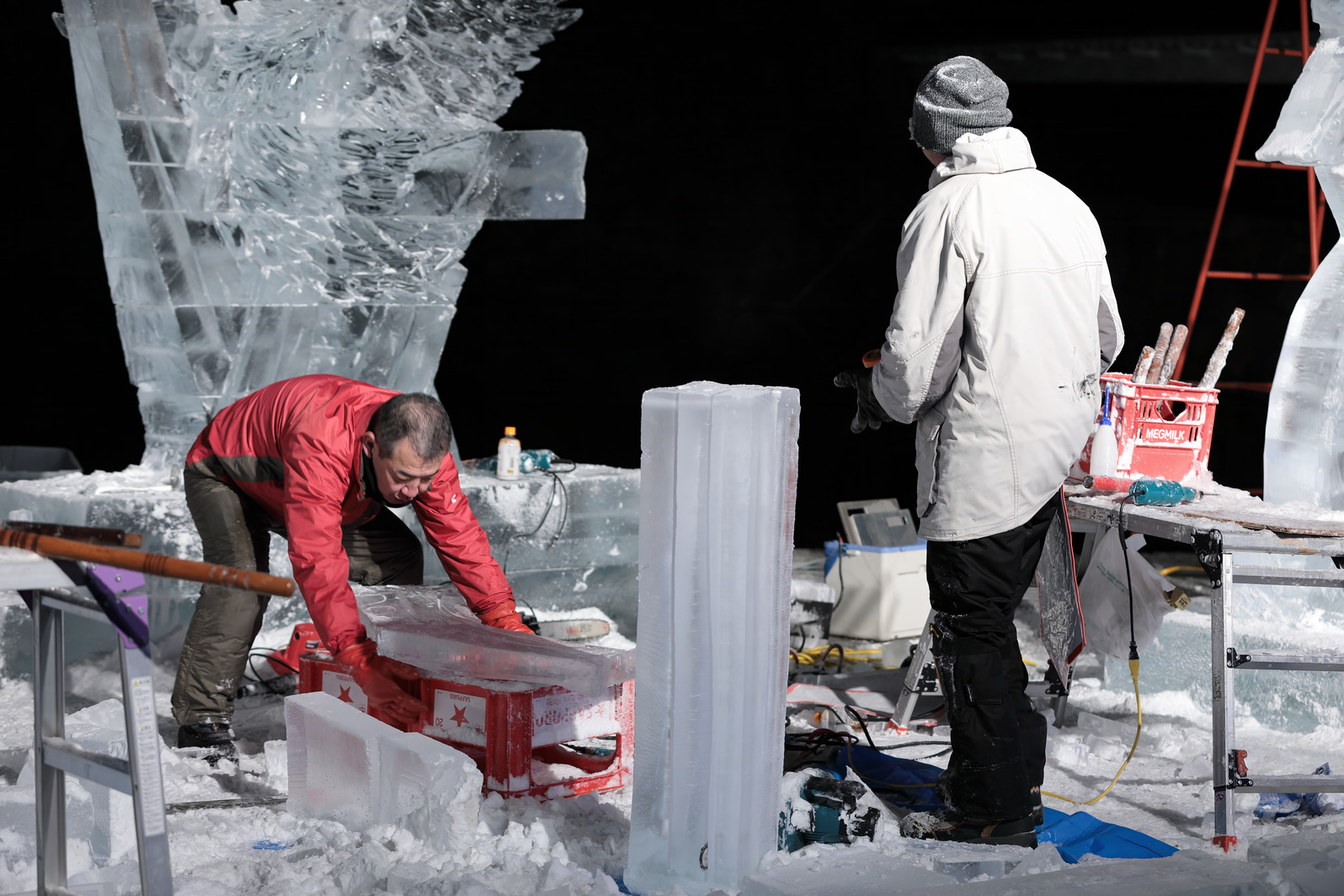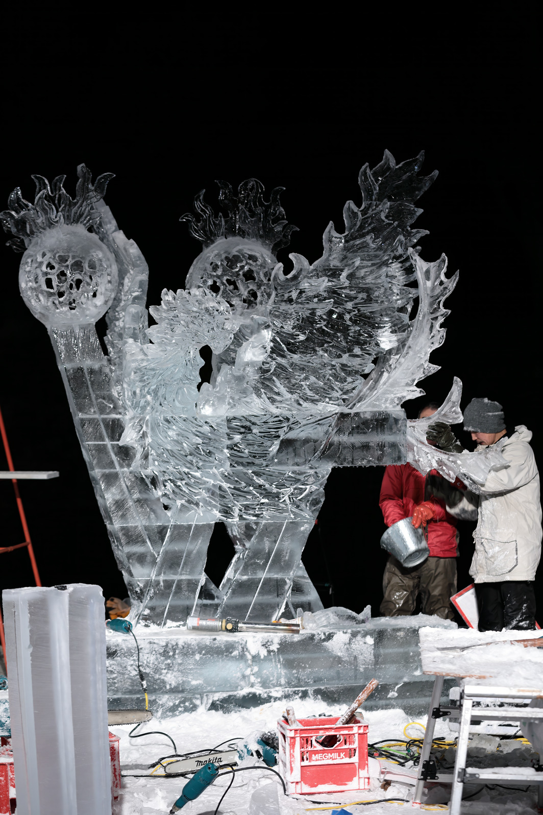 きらびやかな色照明や、まばゆい朝日に照らされる氷像の美しさを味わうのはもちろんだが、それに加え、氷像を作り上げるまでの彼らの戦いぶりを見届けることで初めて、「氷彫刻を見た」と言えるのではないか、と思う。