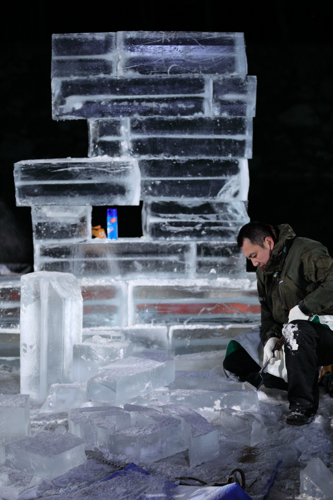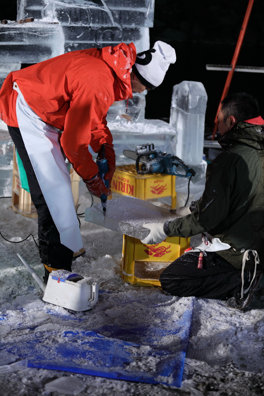 近藤さんは氷を切断し、別の部品の制作に取り掛かる。