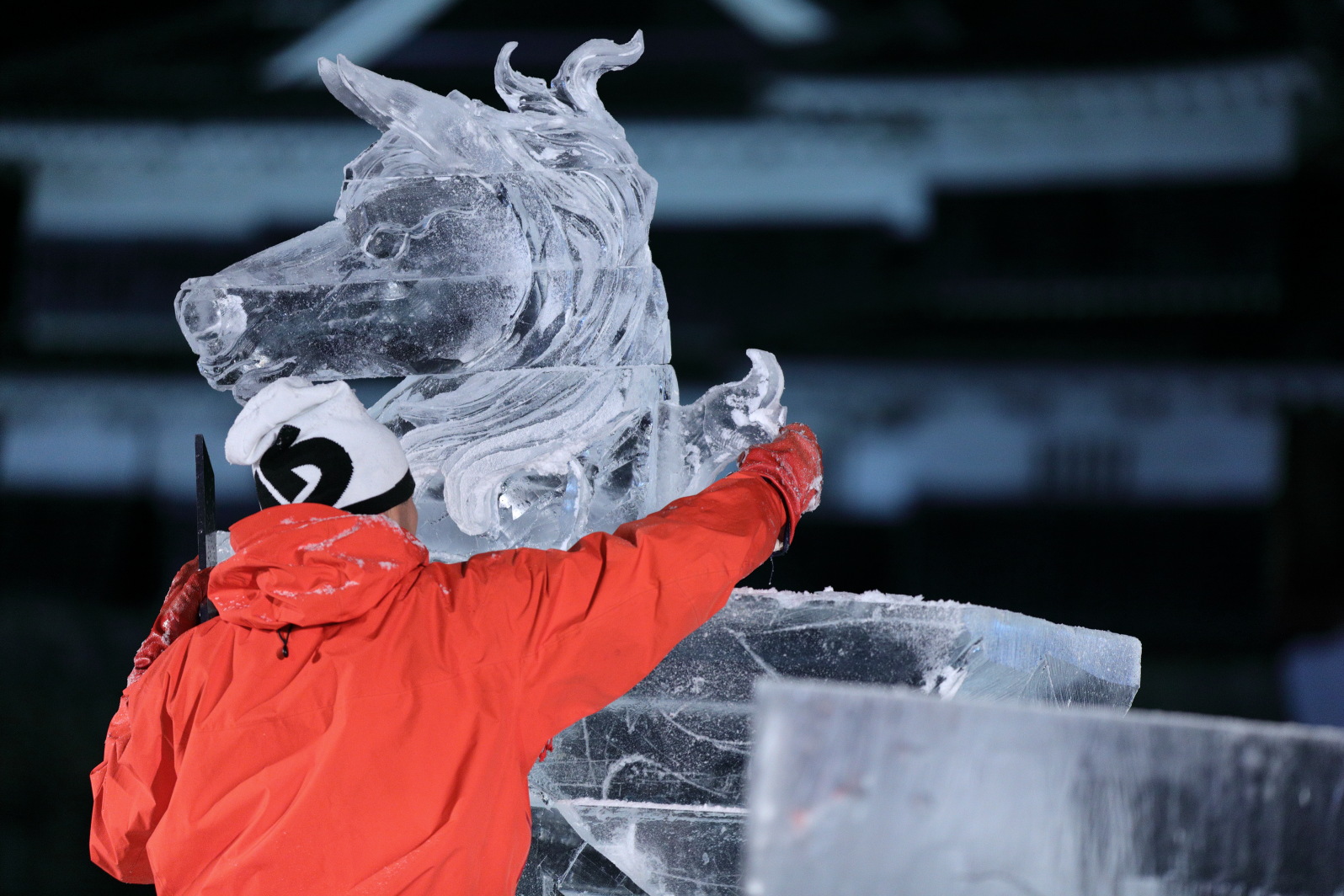 - 加瀬秀雄 赤羽目健悟 氷彫刻 『龍虎の叫び』【3】 (2019年)