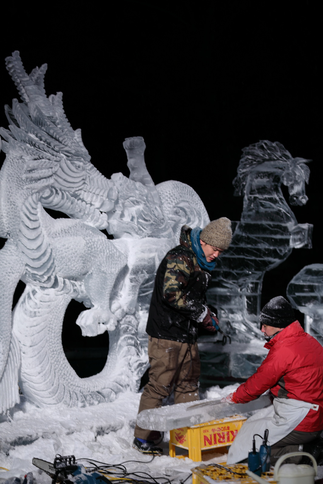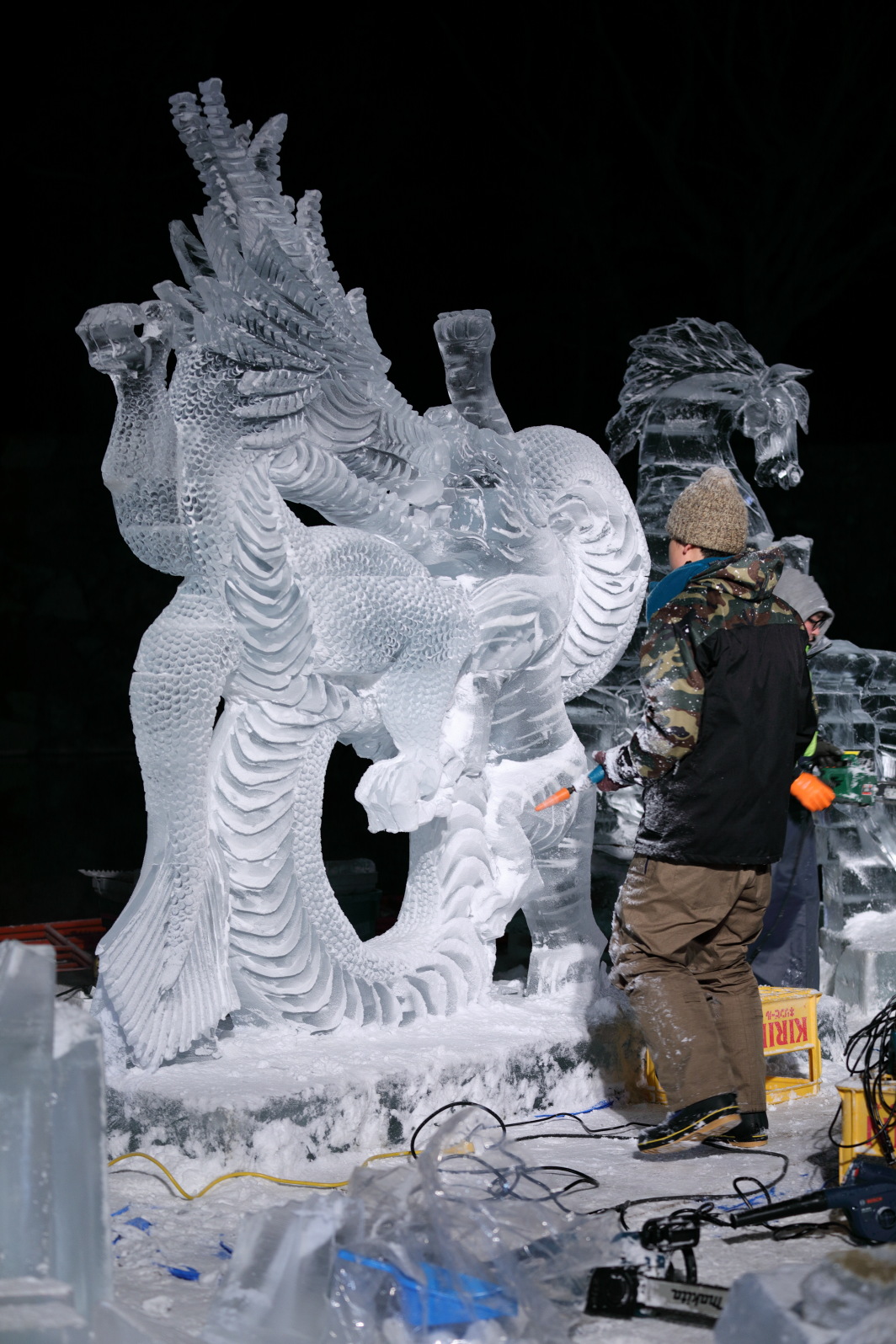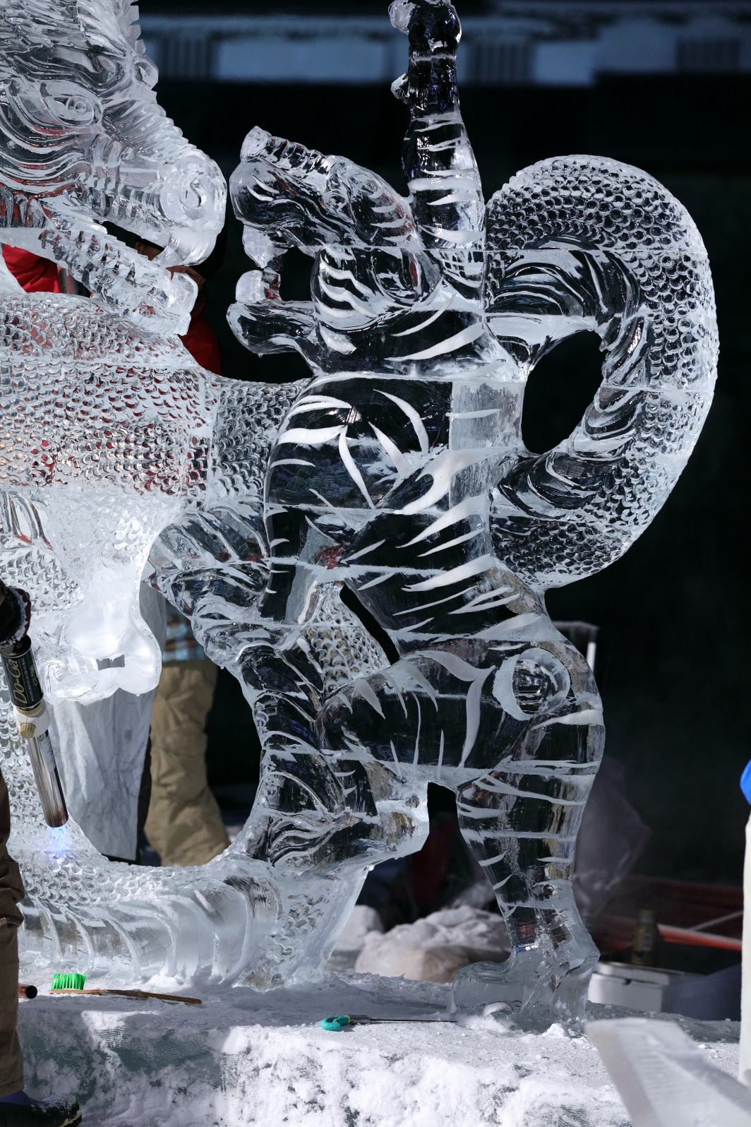 - 加瀬秀雄 赤羽目健悟 氷彫刻 『龍虎の叫び』【4】 (2019年)