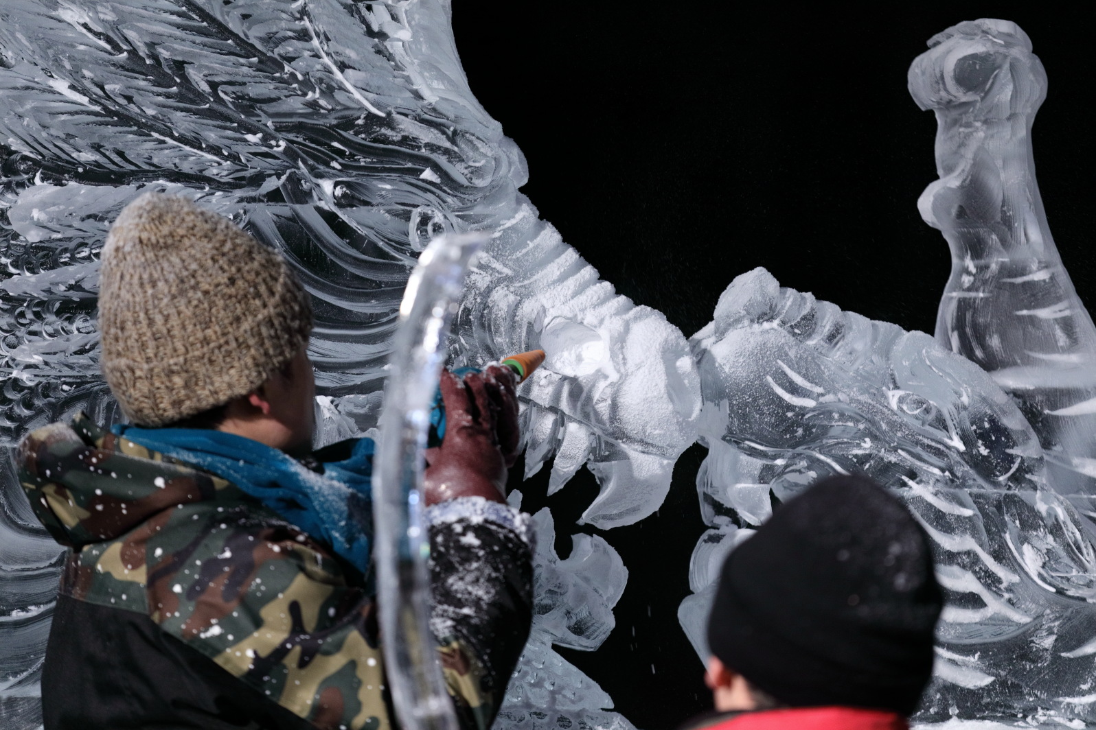 - 加瀬秀雄 赤羽目健悟 氷彫刻 『龍虎の叫び』【3】 (2019年)
