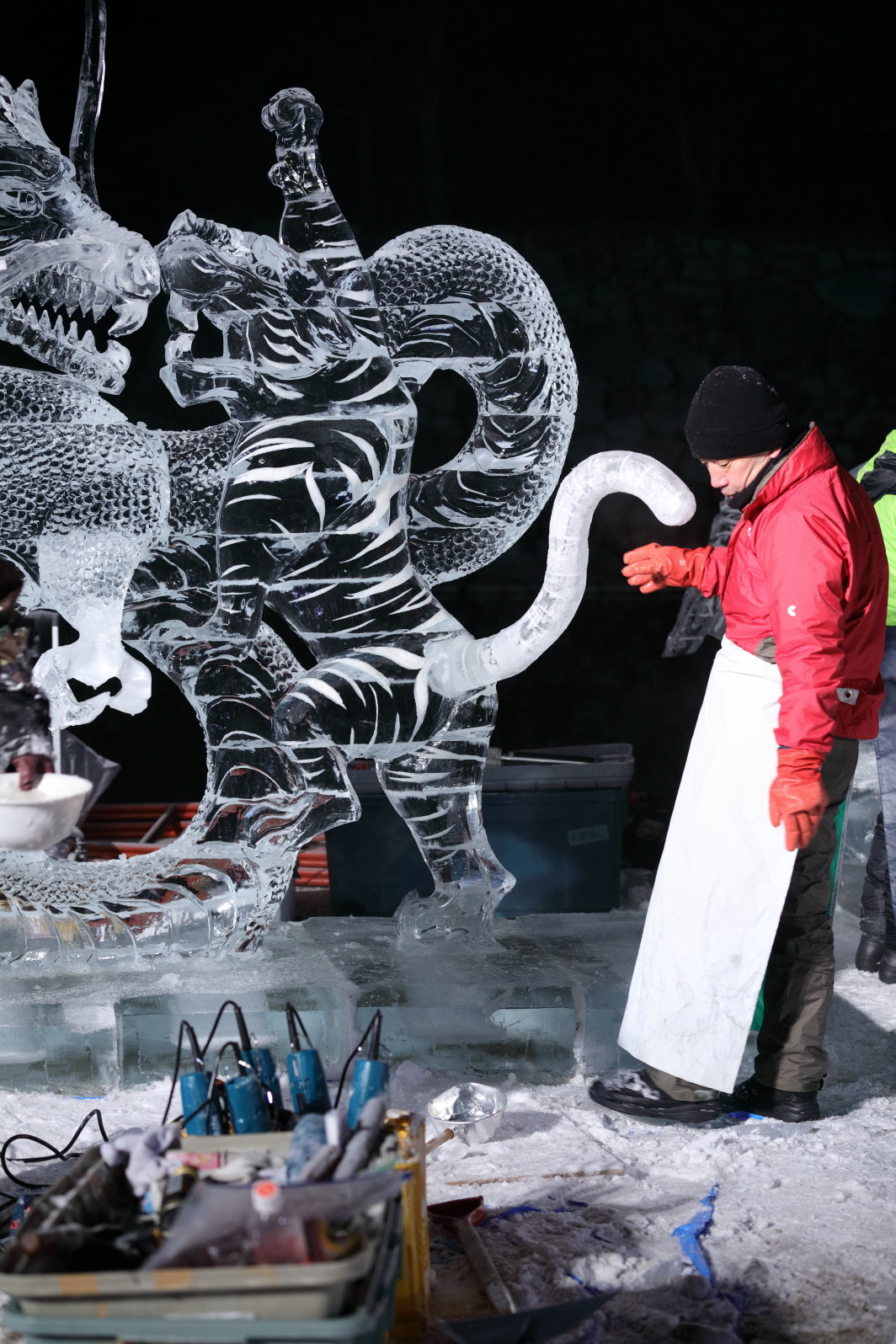 - 加瀬秀雄 赤羽目健悟 氷彫刻 『龍虎の叫び』【1】(国宝松本城氷彫フェスティバル2019) (2019年)