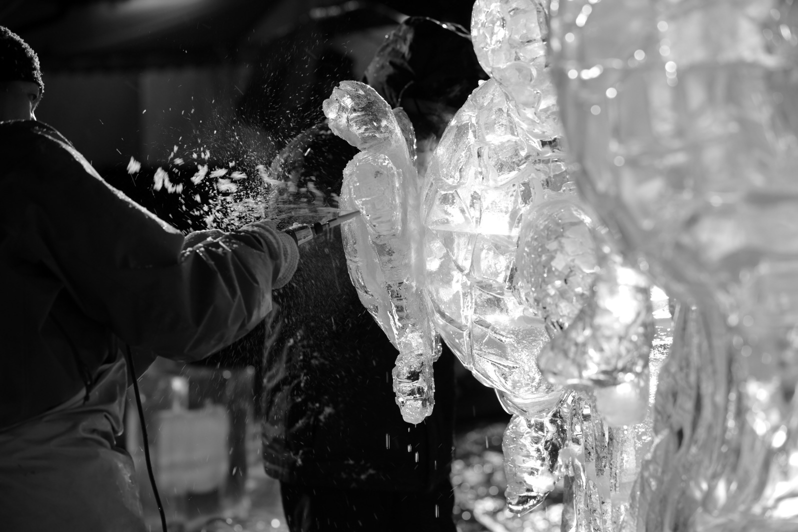 氷彫刻の常識では考えられない技巧だ。