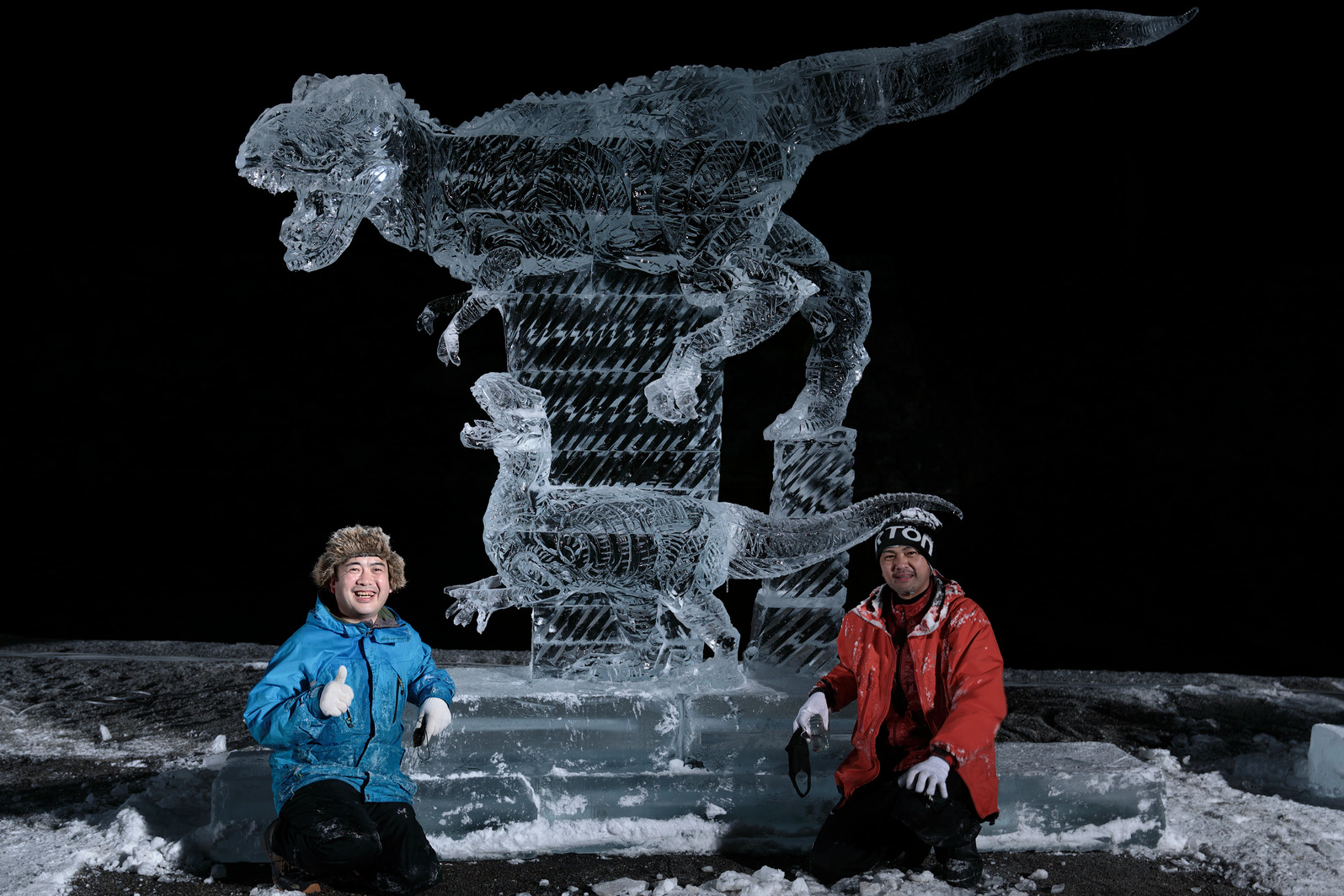 氷彫刻『白亜紀の王者』は