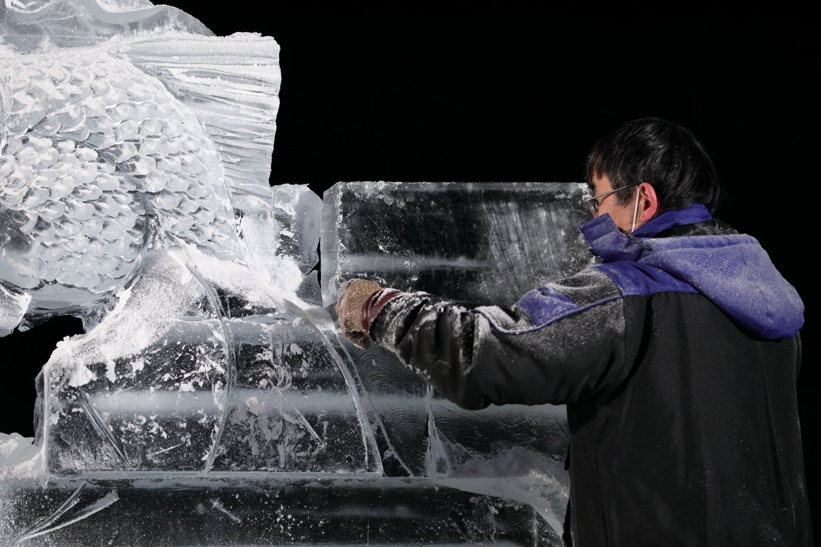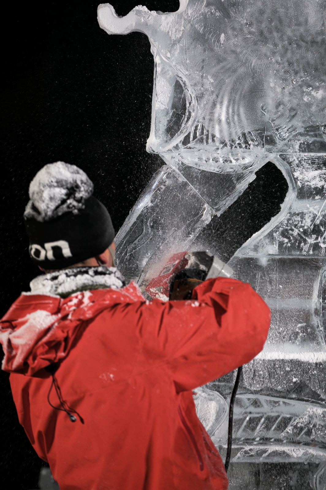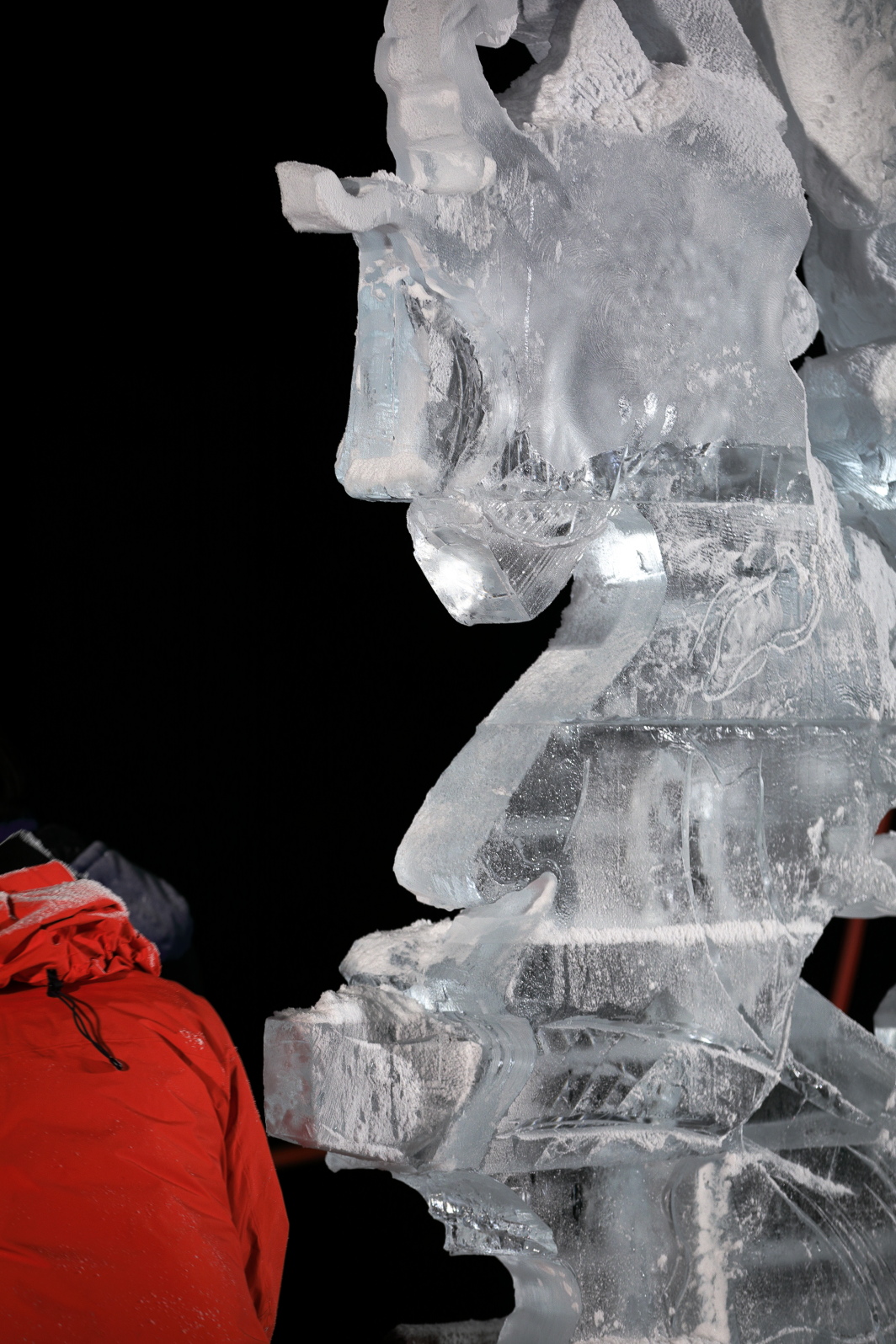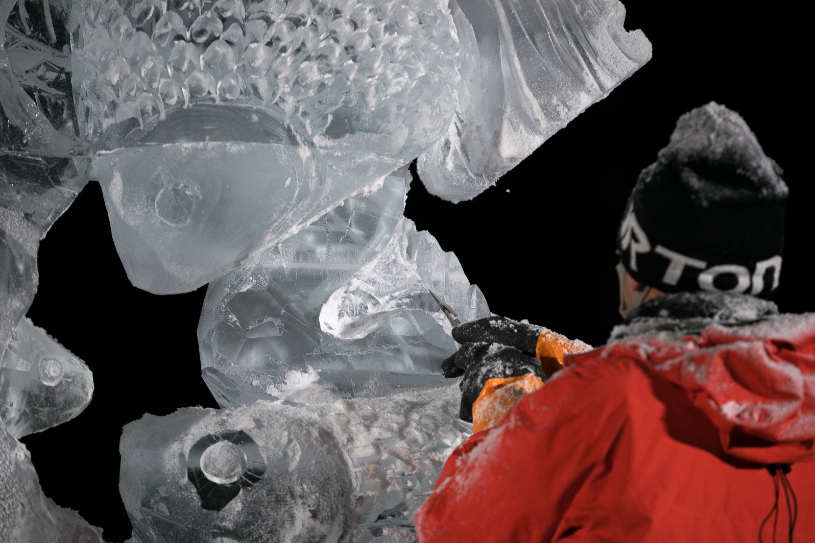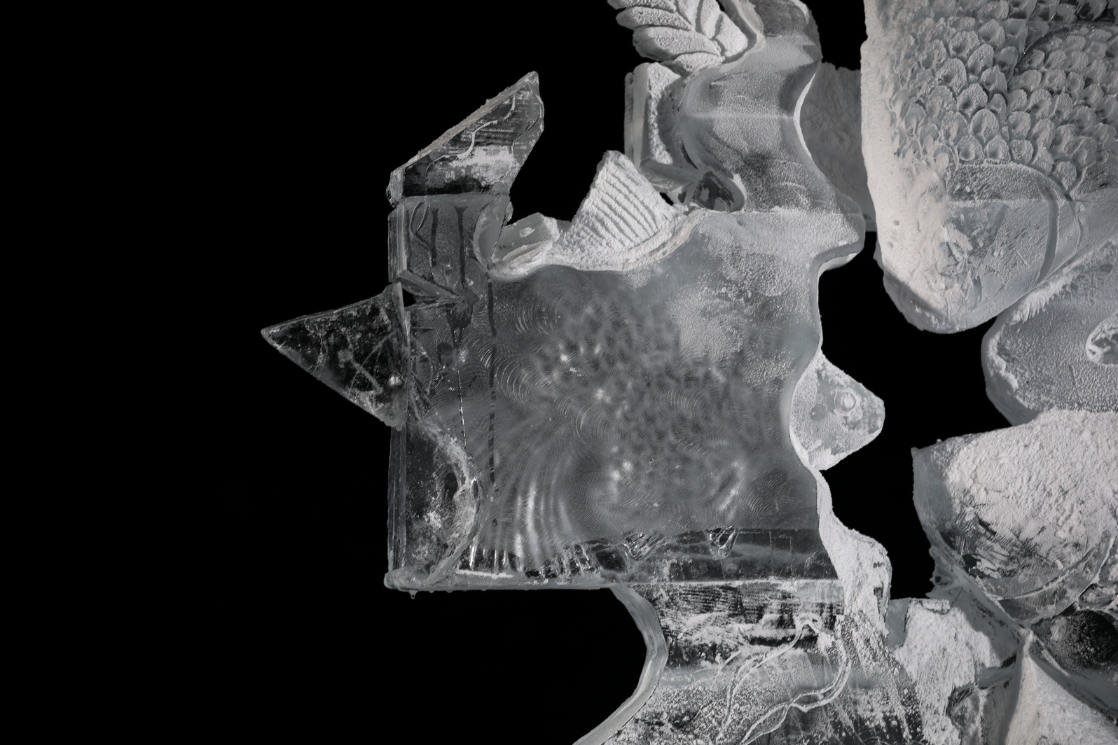 作業で出た氷屑「残氷(ざんぴょう)」の回収が入る。