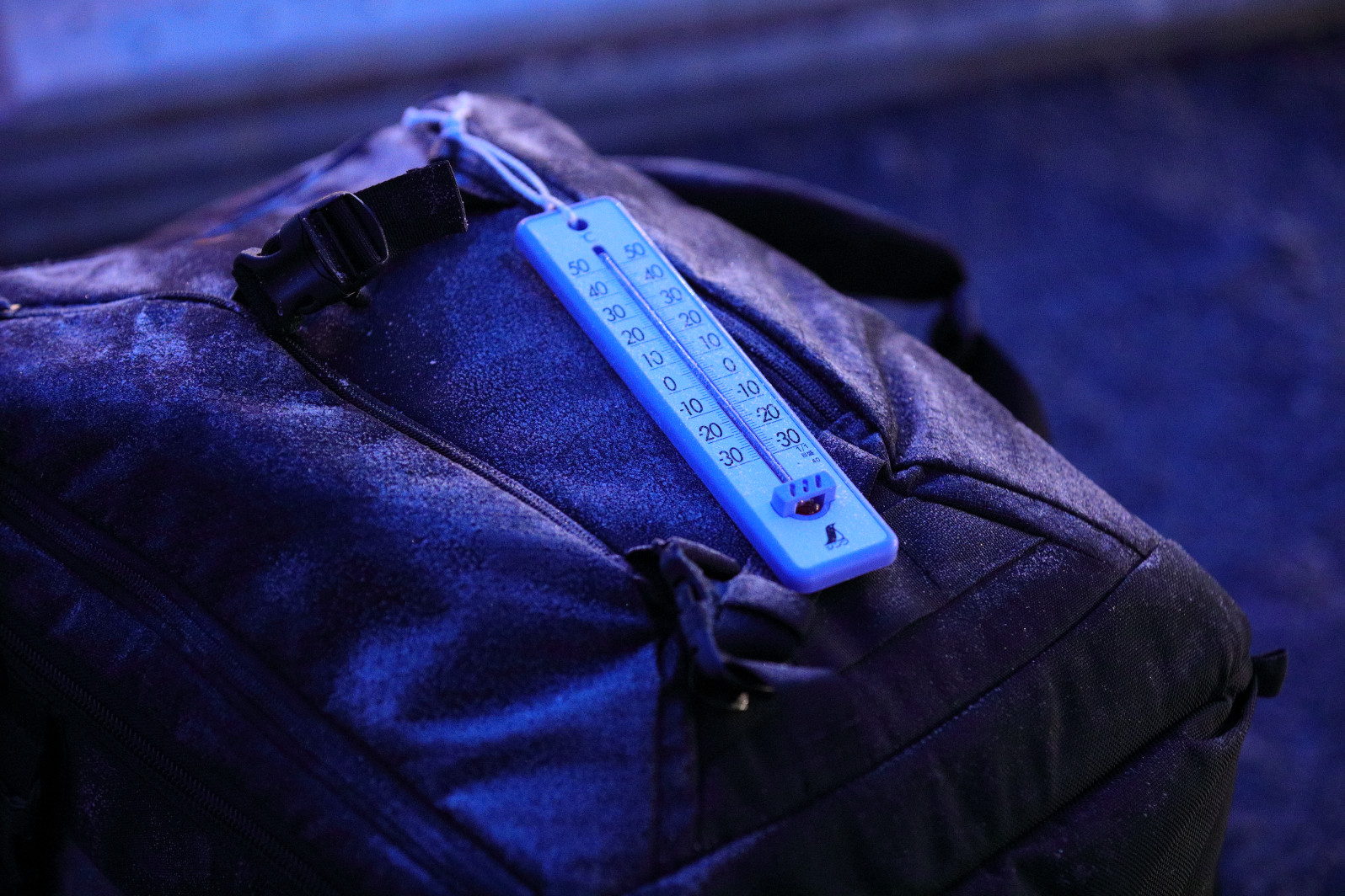 カメラバッグの上には、霜。
