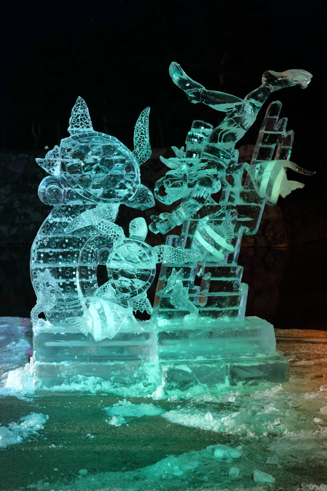 - 加瀬秀雄 赤羽目健悟 氷彫刻『さあ出発!!海の中の新しい仲間と共に』【4】 (2018年)