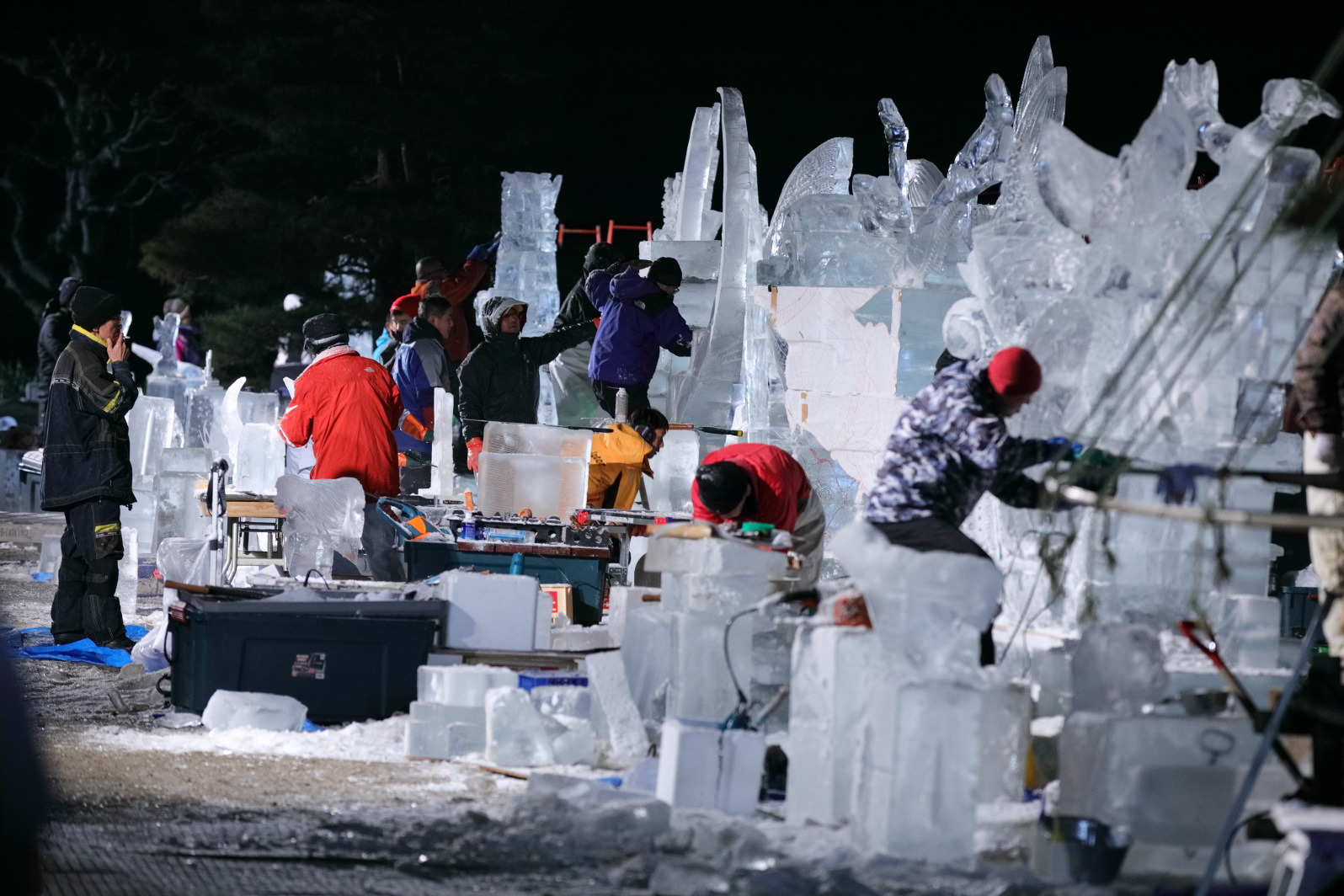 黙々と氷板を彫り続ける。