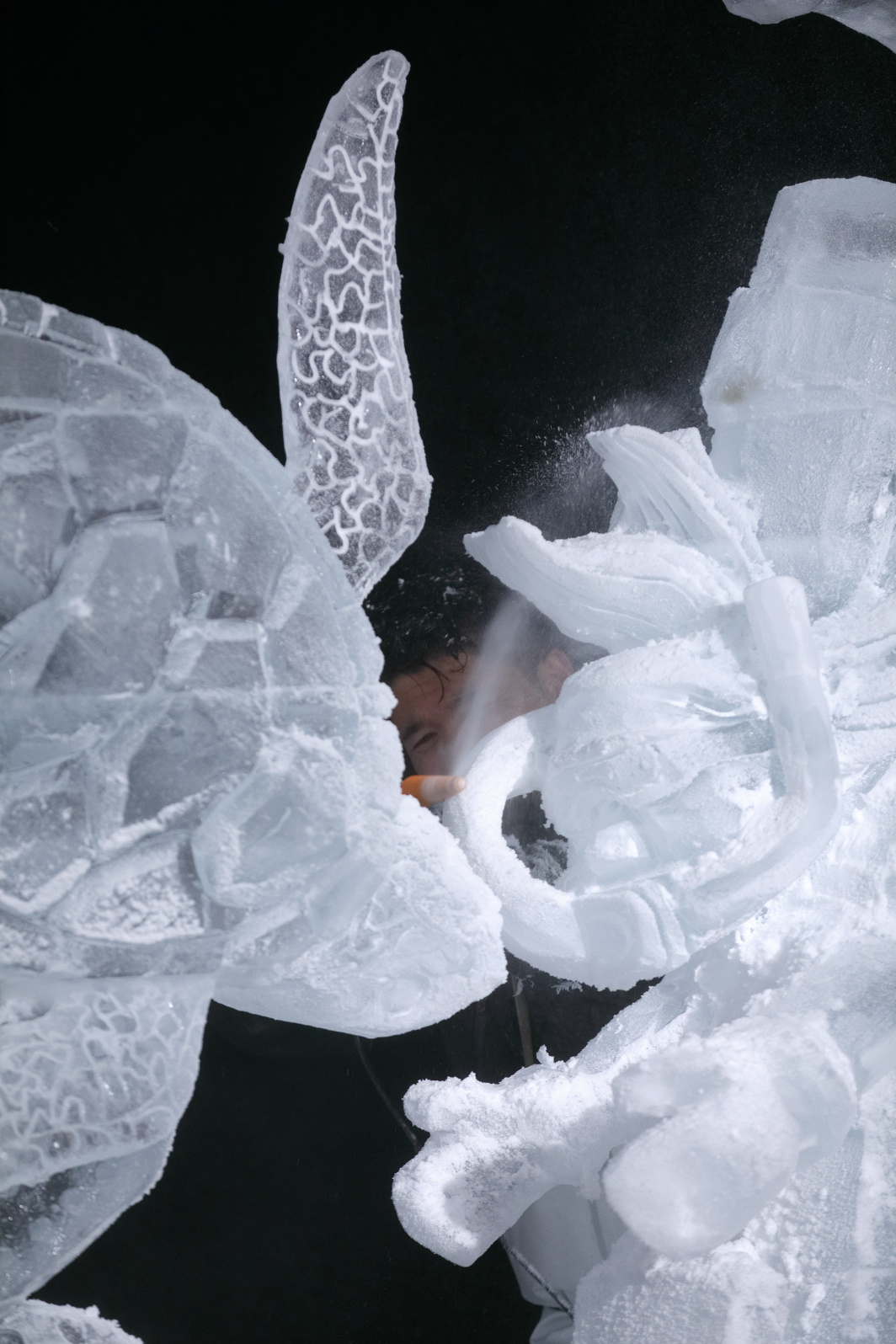 これは氷を彫刻しているのではない。