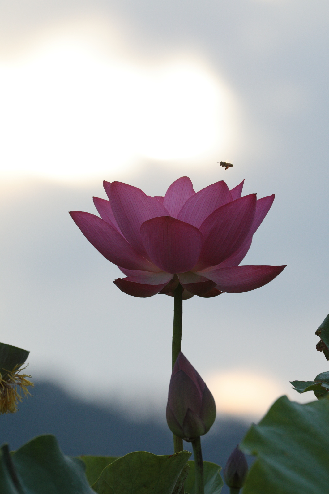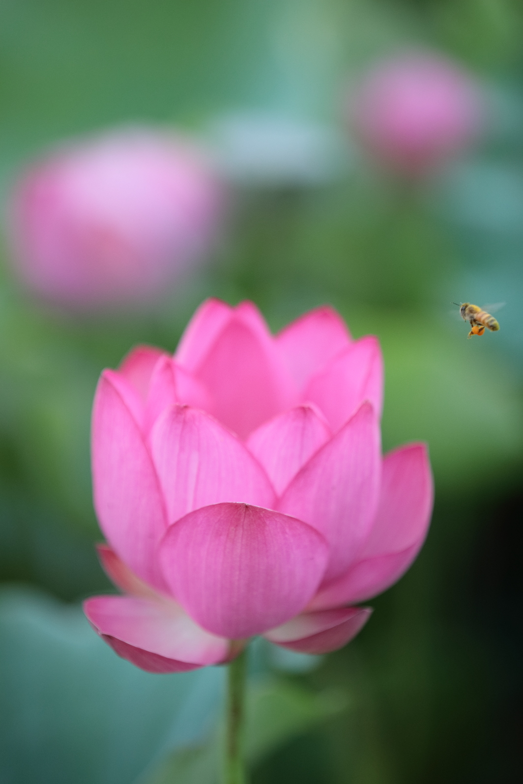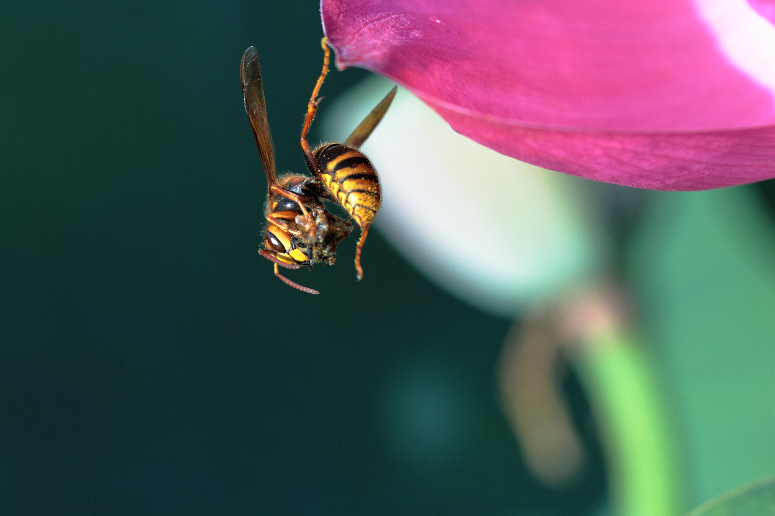時折、ハスの花の間をスズメバチが高速巡回する。