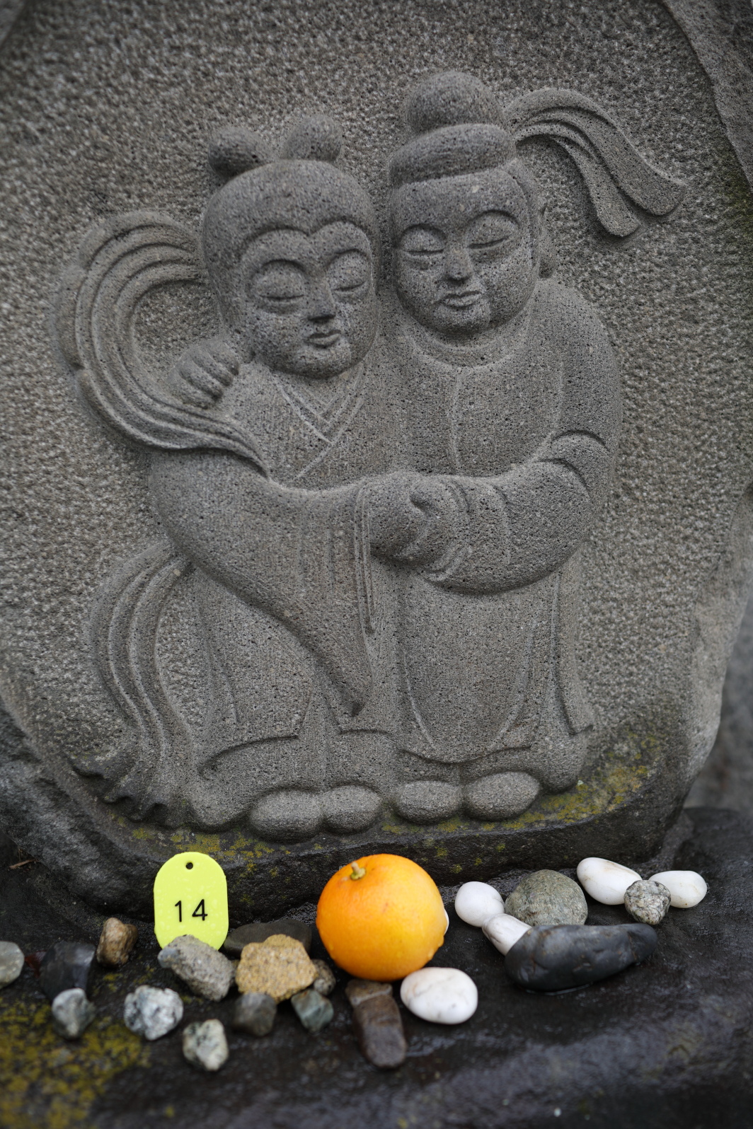 道祖神に小石や14番の札を供えたのは誰だ。