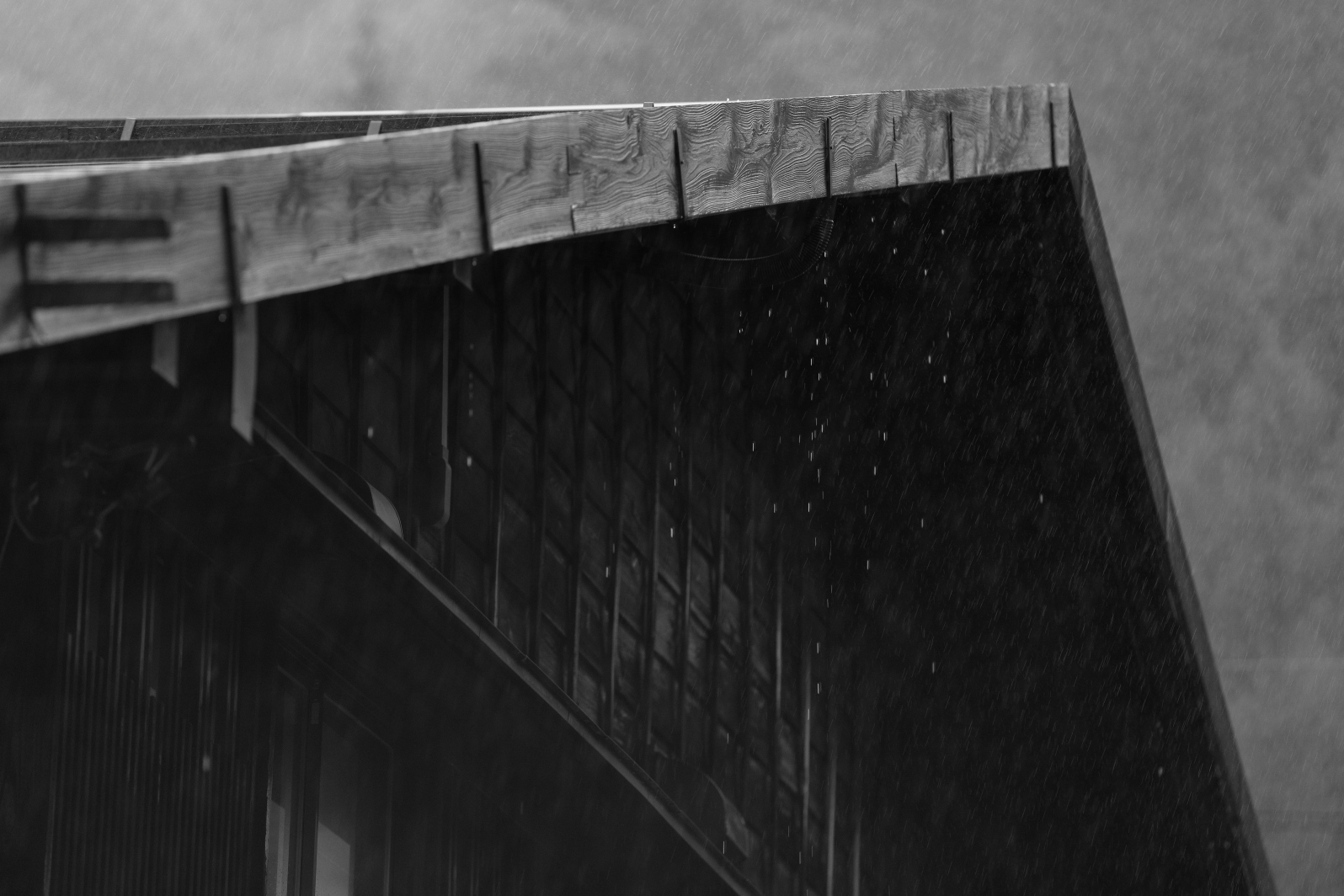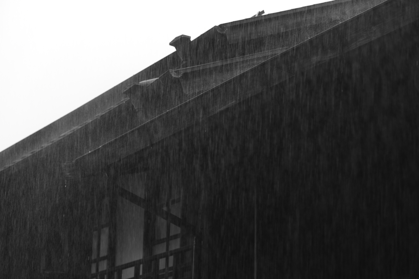 いわゆる浮世絵のような濃密な雨筋を写すには、土砂降り級の雨が必要になる。