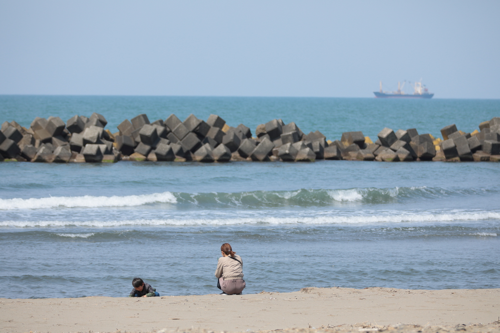 穏やかな春の日の海。