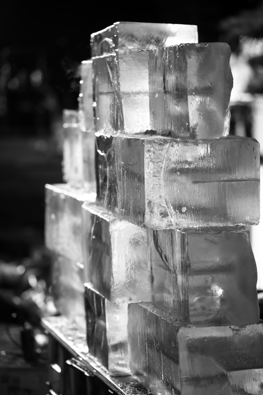 筋彫りの施された氷塊。