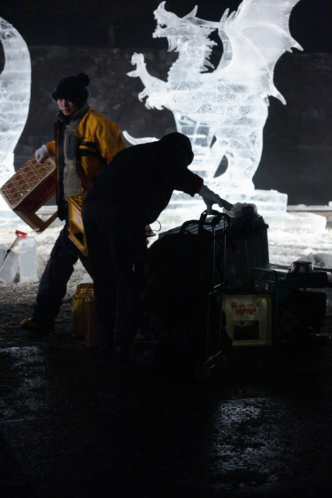 この『DRAGON』の制作では、彼らの氷彫刻師としての芸術性だけでなく、不眠不休で氷を彫刻し続ける彼らの体力と精神力にも驚かされた。