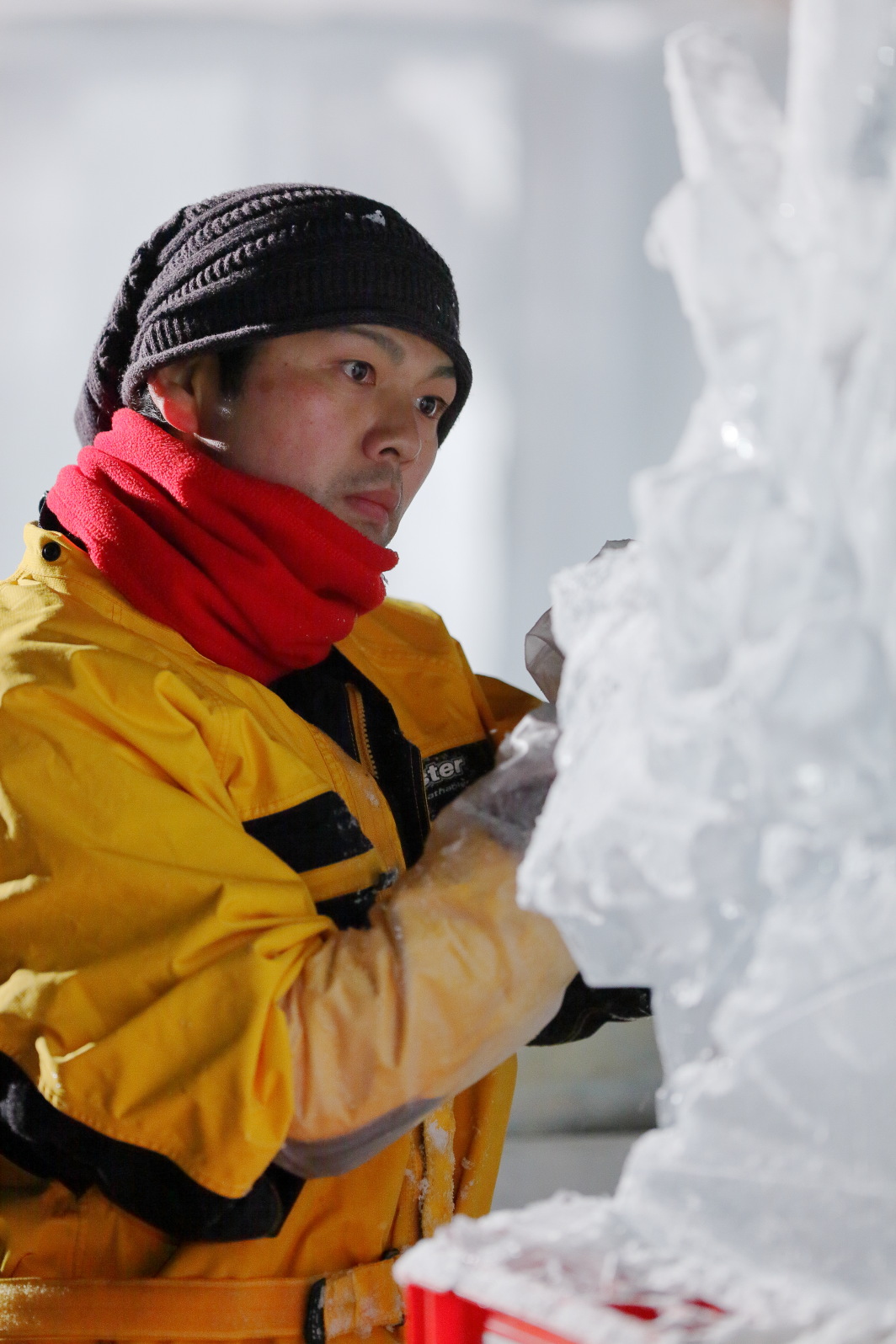 それは、「氷彫が出来上がるまでの過程」を撮影すること。