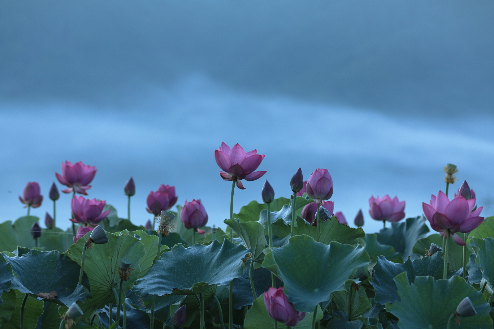 ハスの花の向こうに