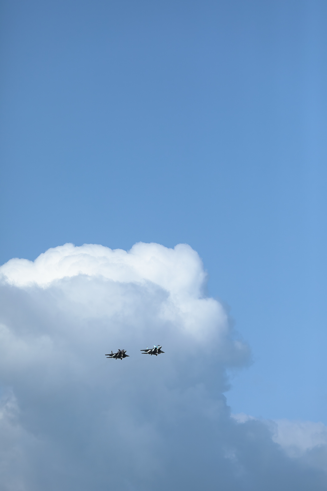 ある機体は爆撃機役、別の機体は護衛機役として飛ぶ。